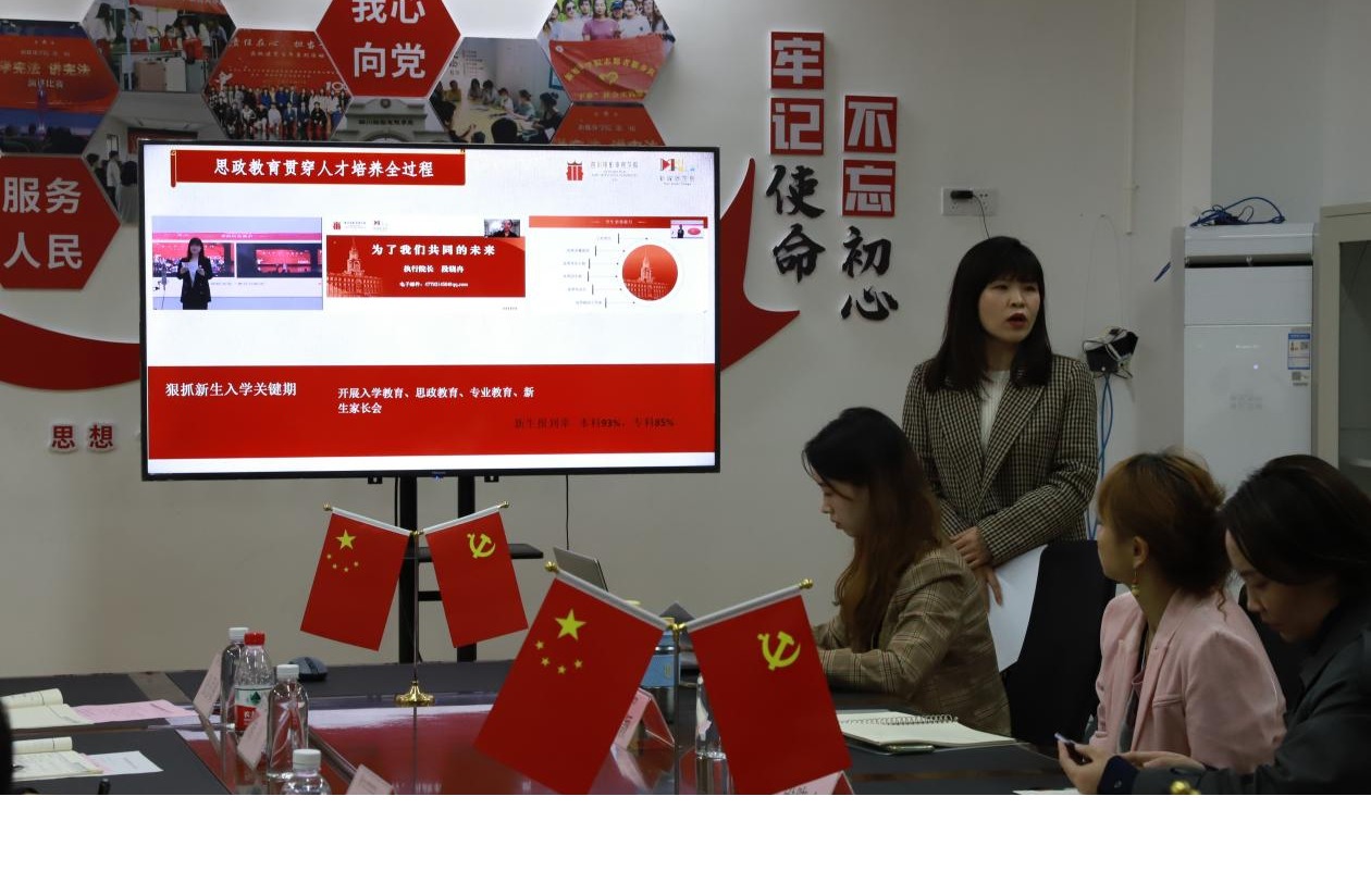 新媒体学院党委副书记范琳琳进行党建工作的汇报。