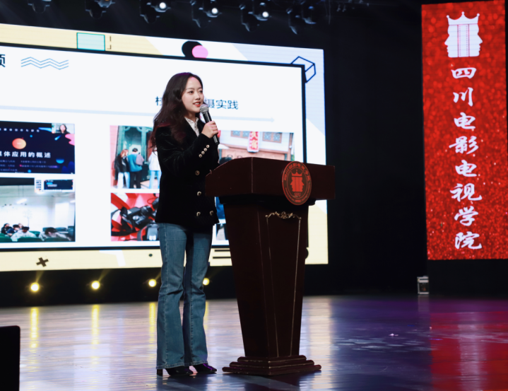 首先,新媒体学院执行院长段晓冉为大会致辞,段院长对动画专业的同学的作品给予极高的肯定,她提到今年是川影开启第二个三十年的第一年,四川电视电影学院的师资力量越来越强,动画教研室的老师们也表现优秀,希望新媒体学院动画专业在老师们的带领下,在同学们的努力下,向着建设省级、国家级一流专业的方向进发。