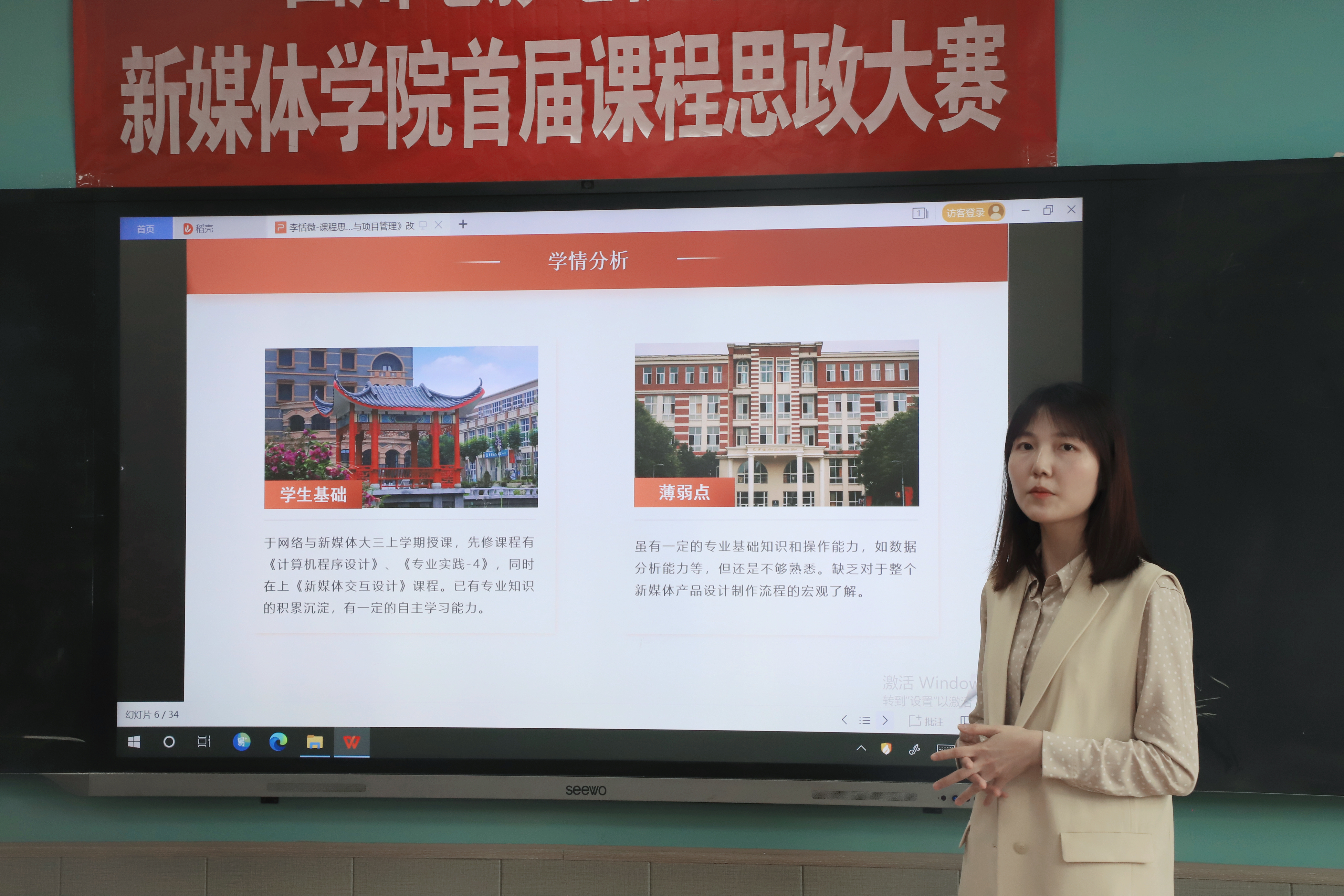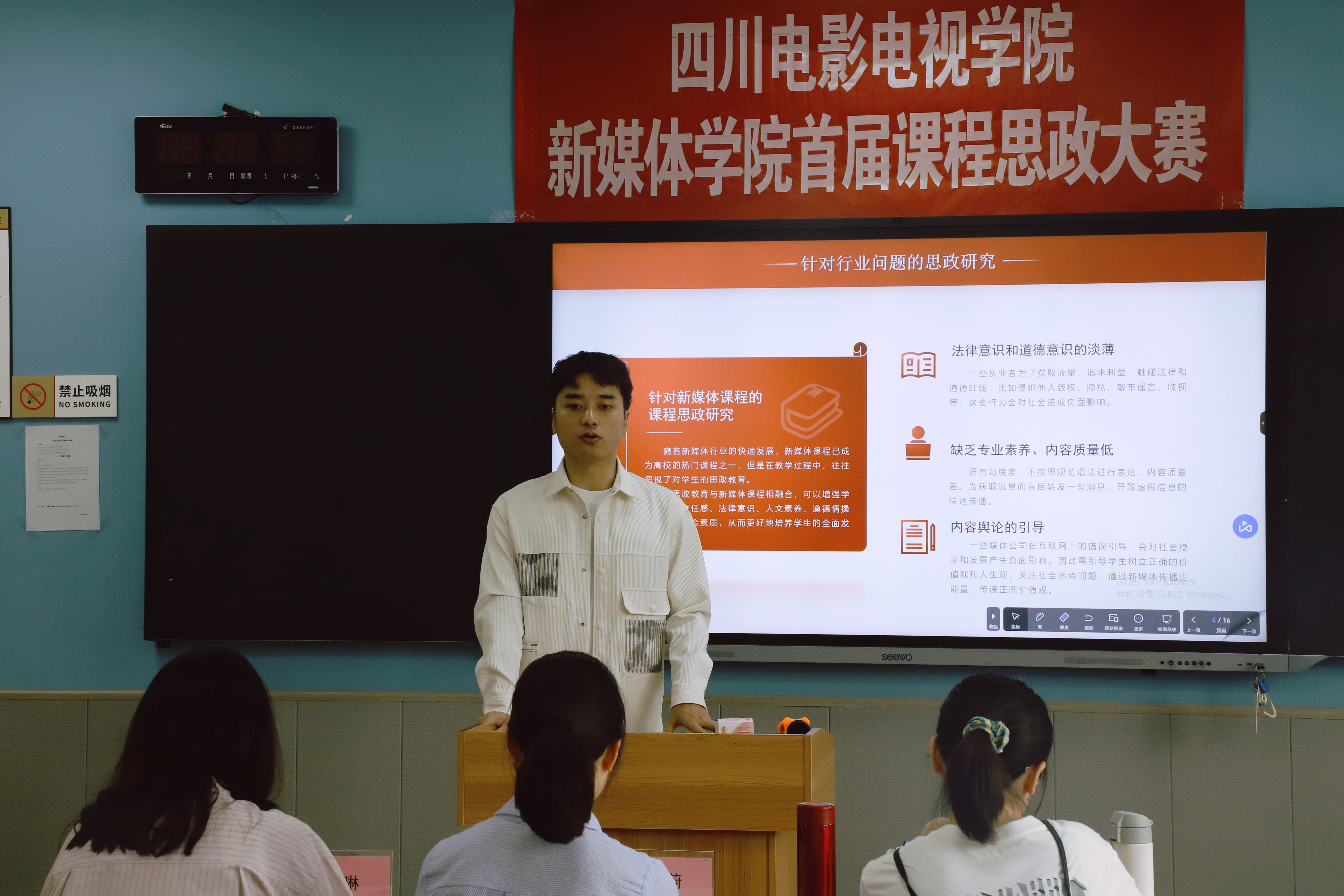 为贯彻落实中共中央办公厅、国务院办公厅《关于深化新时代学校思想政治理论课改革创新的若干意见》《高等学校课程思政建设指导纲要》文件精神,根据《beat365平台官方网站关于推进“课程思政”建设的实施意见》《beat365平台官方网站课程思政教育教学改革实施方案》要求,落实立德树人根本任务,深化课程思政教学改革,充分发挥课程思政育人功能,提高人才培养质量,同时献礼建校30周年,新媒体学院在完成各教研室教学大赛初赛的基础上,于4月13日9:30至4月13日15:35,在闻院305举行了课程思政教学大赛复赛。