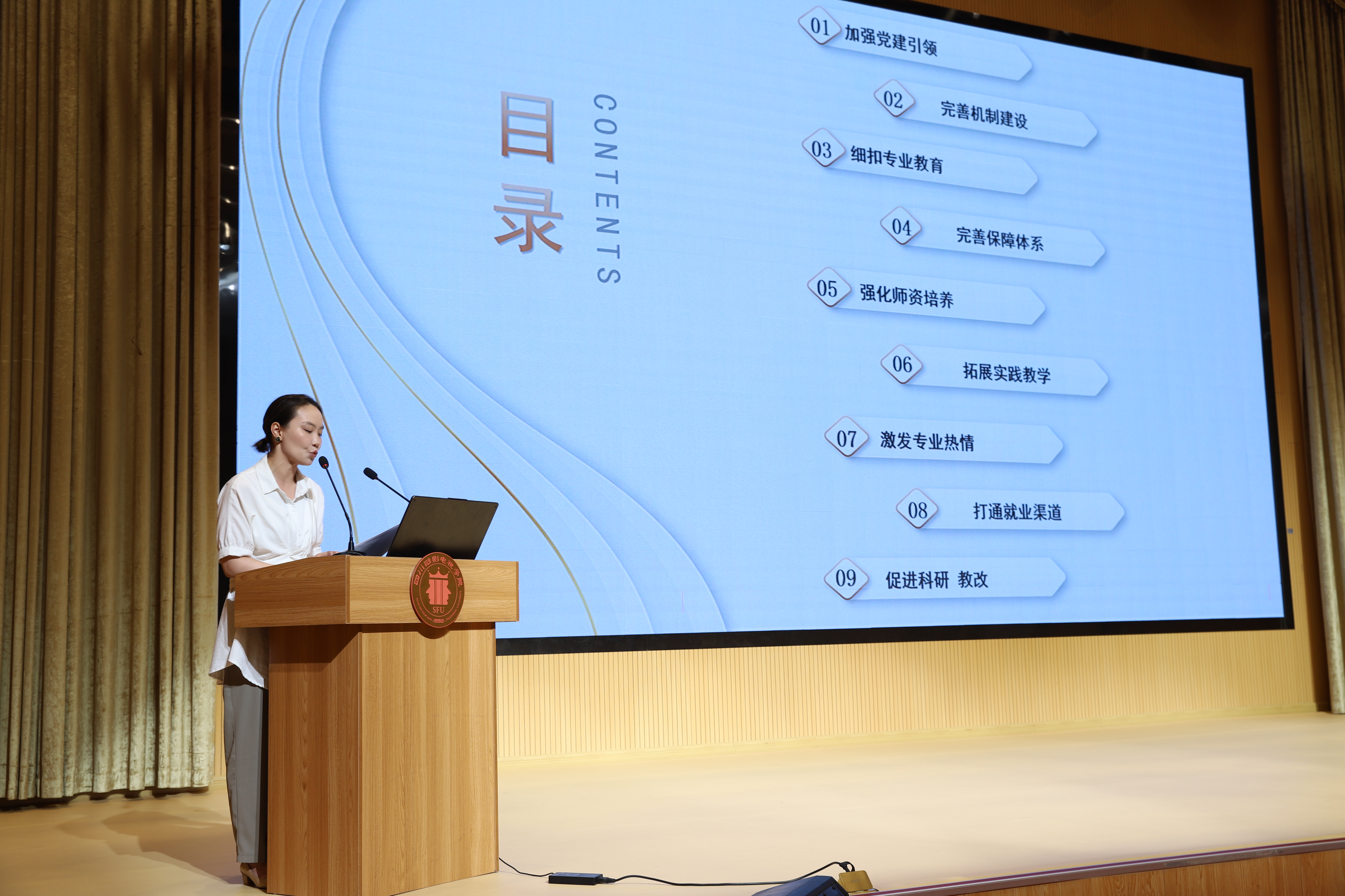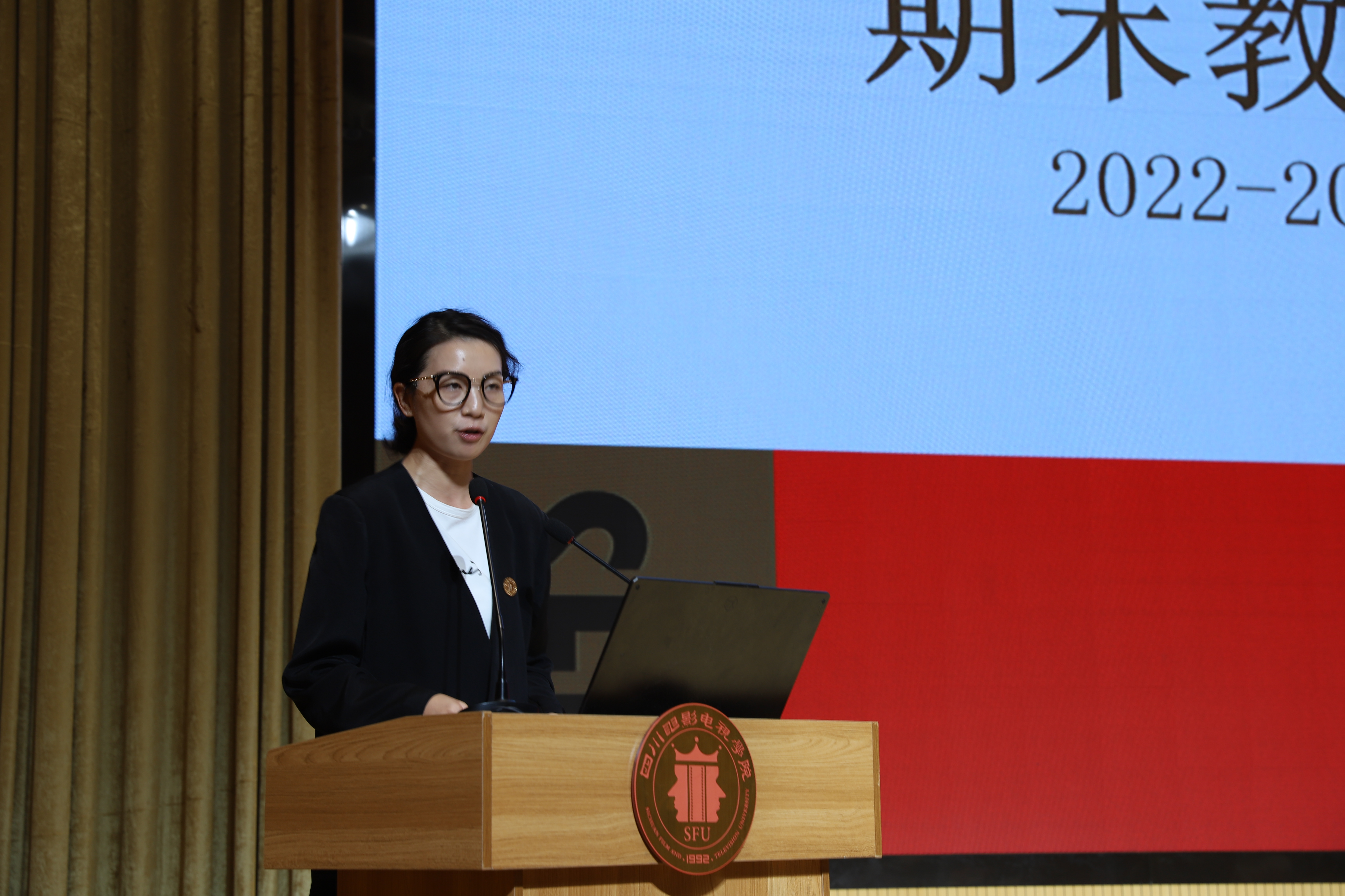 新媒体学院执行院长段晓冉就本学期的工作进行了汇报。新媒体学院加强党建引领,注重课程思政进课堂,重视学院品牌宣传,构建思政育人大格局。在团队管理方面,细化分工,制定条例,完善了团队建设,加强了学院科学管理。