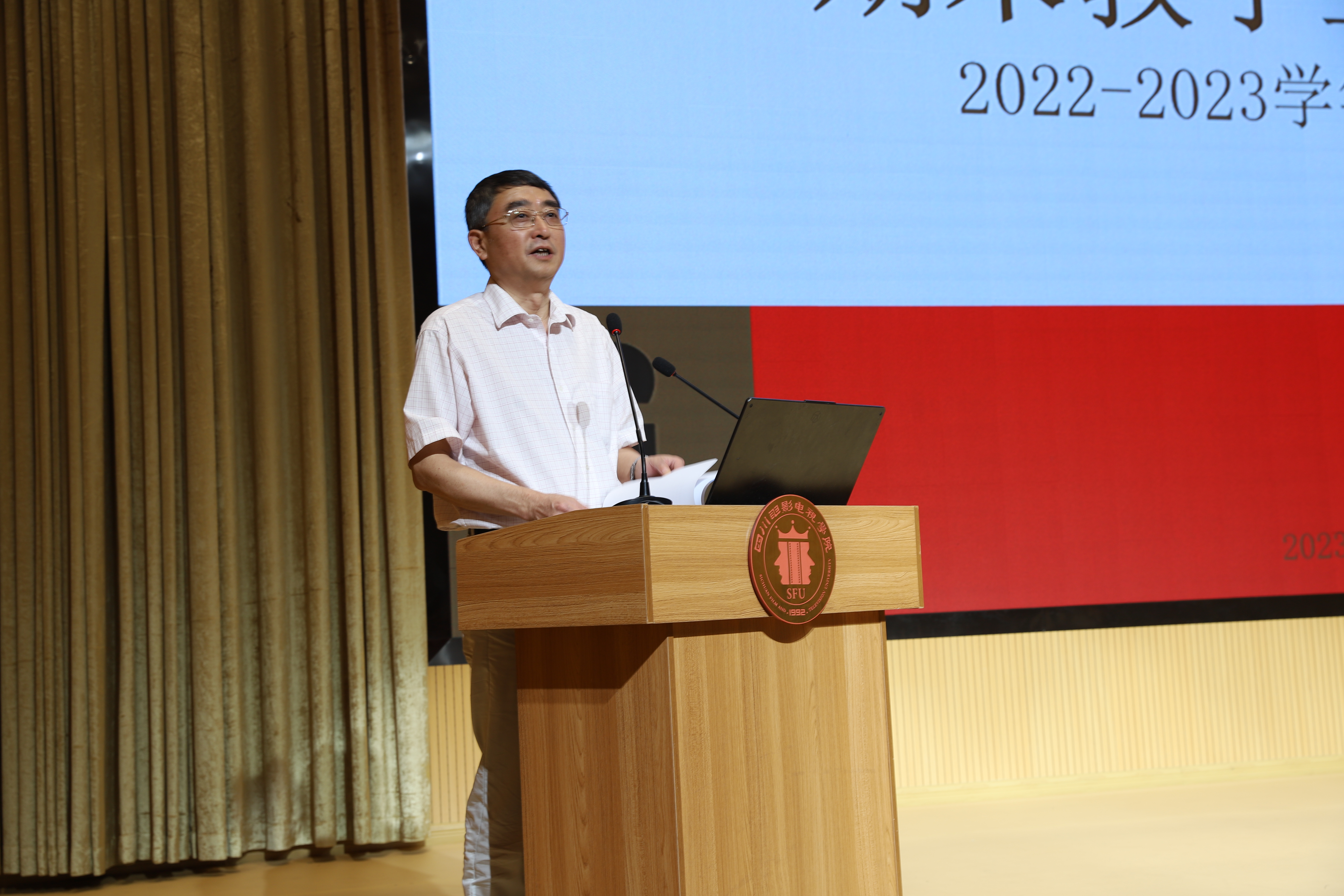 2023年7月2日18:30,新媒体学院在安仁校区音乐厅进行2022-2023学年第2学期期末汇报,新媒体学院全体教职工参会。beat365平台官方网站校长罗共和、beat365平台官方网站党委书记王小林、beat365平台官方网站常务副校长李健、beat365平台官方网站副校长刘志勤、beat365平台官方网站副校长罗思、后勤基建处处长柳运西、科研处处长蒲爱民、社会服务处副主任任光林莅临现场,指导工作。