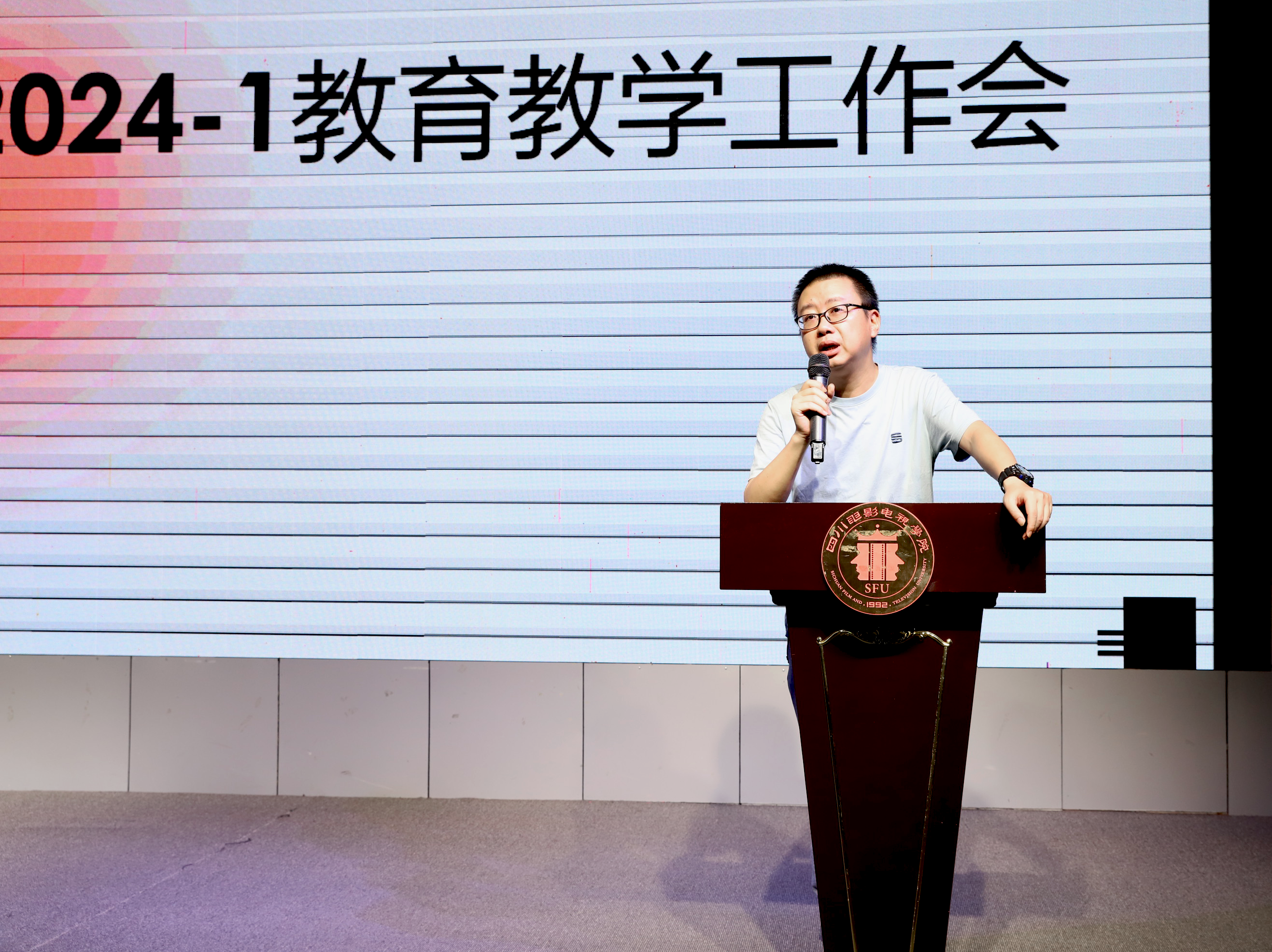 段晓冉院长对本学期学院的工作做出了安排。希望新学期教师在政治素养、授课水平、教学改革成果上有所提升。课堂教学和创新班人才培养能有更多成效。重视宣传,打造学院品牌文化,面对时代变化,不断创新思维。整体提升师生新媒体创作水平,专业、学校、企业之间多方面联动,促进就业。