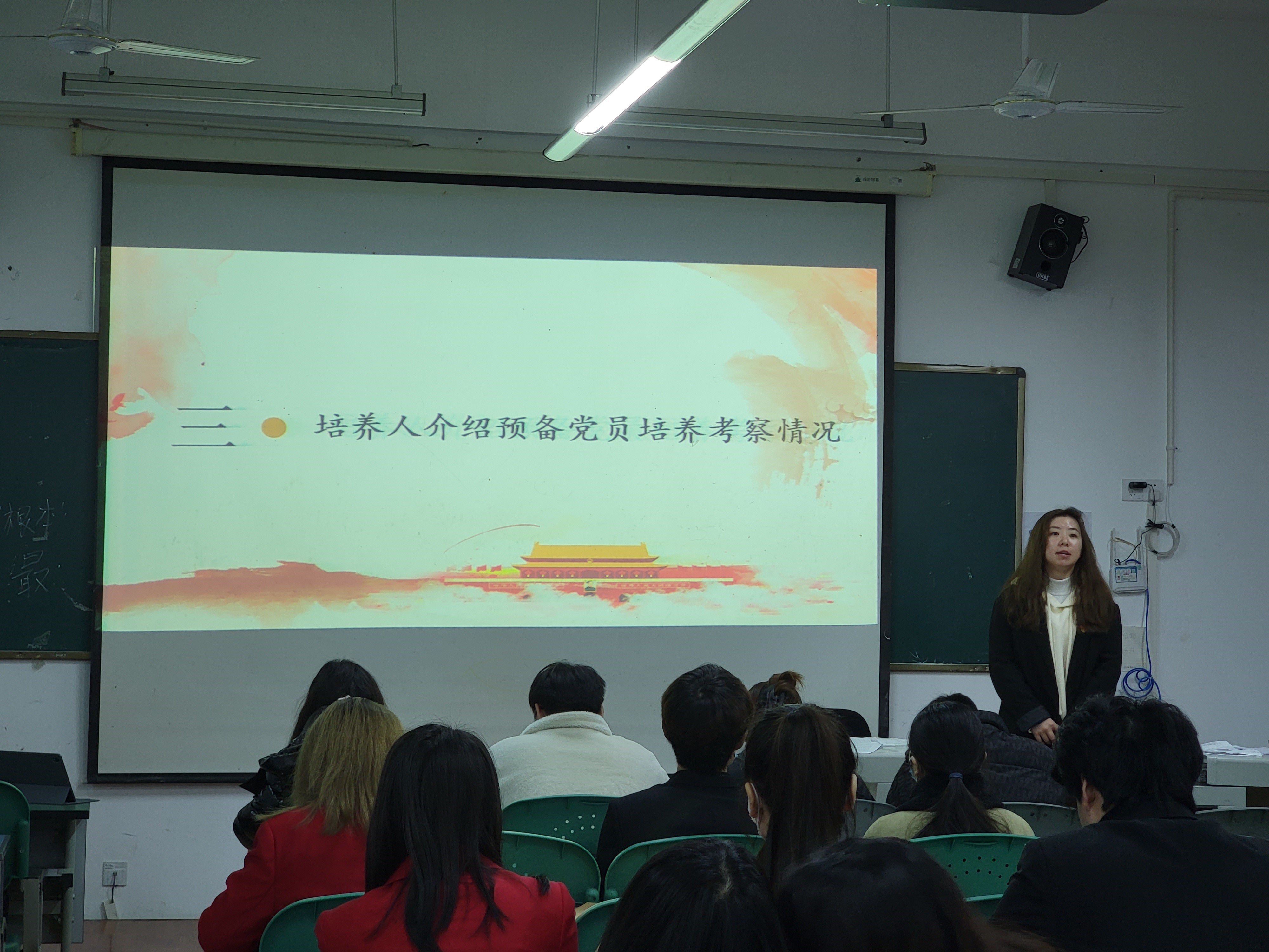 学生党支部书记李坤静老师表示到,这是一次预备党员转正大会,也是一次生动的党课。大家又接受了一次入党教育,更加坚定了自己的理想信念和对党的忠诚。从预备党员到正式党员,是党组织对你的充分肯定的,希望在今后的学习生活中,更应该牢记使命,时刻跟随党组织的步伐!