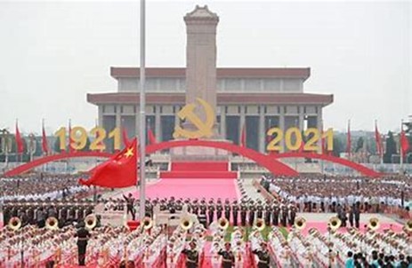天安门广场上,人民英雄纪念碑巍然矗立。纪念碑北侧,中国共产党党徽和“1921”“2021”字标格外醒目。广场东西两侧,100面红旗迎风招展。7月1日上午8时,庆祝中国共产党成立100周年大会在北京天安门广场隆重举行。中共中央总书记、国家主席、中央军委主席习近平发表重要讲话。