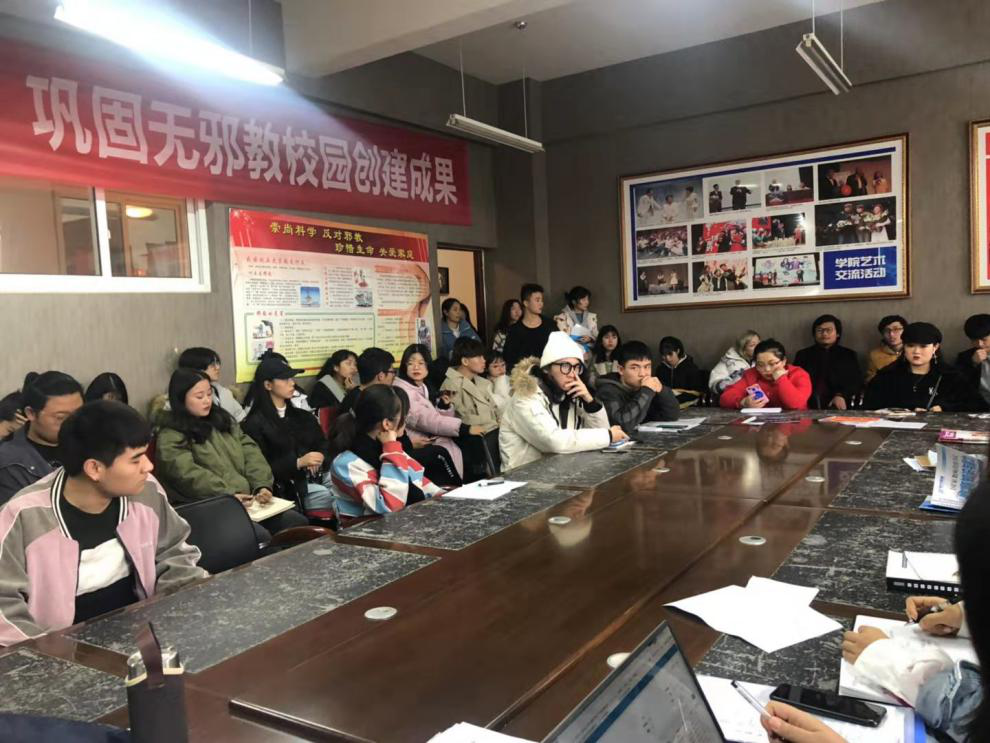 时光飞逝,转眼已到2019—2020学年第一学期期中,部门为了解学生上课情况、清楚教师工作状况、提升部门教学质量,认真履行学院2019-2020学年第一学期期中教学检查相关文件精神,分别于2019年11月19日中午12点30分在安仁贡院第四会议室,2019年11月21日中午12点30分在金牛贡院二会议室召开了两校区学生座谈会。出席此次会议的有:基础部教师,安仁校区各班学生代表,金牛校区各班学生代表。