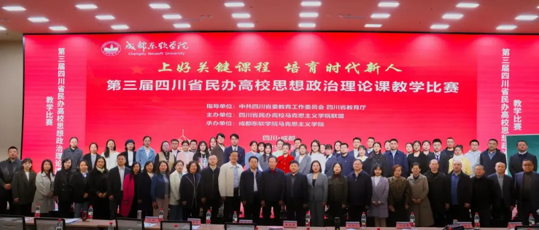3月28日,第三届四川省民办高校思想政治理论课教学比赛在成都东软学院华天图书馆国际报告厅圆满举行。本次比赛在中共四川省委教育工委、四川省教育厅的悉心指导下,由四川省民办高校马克思主义学院联盟主办,成都东软学院马克思主义学院具体承办。成都东软学院党委书记赖廷谦与教育部思想政治理论课教学指导委员会委员、西南财经大学马克思主义学院院长唐晓勇,四川大学党委宣传部常务副部长李栓久,教育部思想政治理论课教学指导委员会第九分教指委(民办高校思政理论课教学指导委员会)委员、原太原理工大学马克思主义学院院长刘振霞等出席此次比赛。
