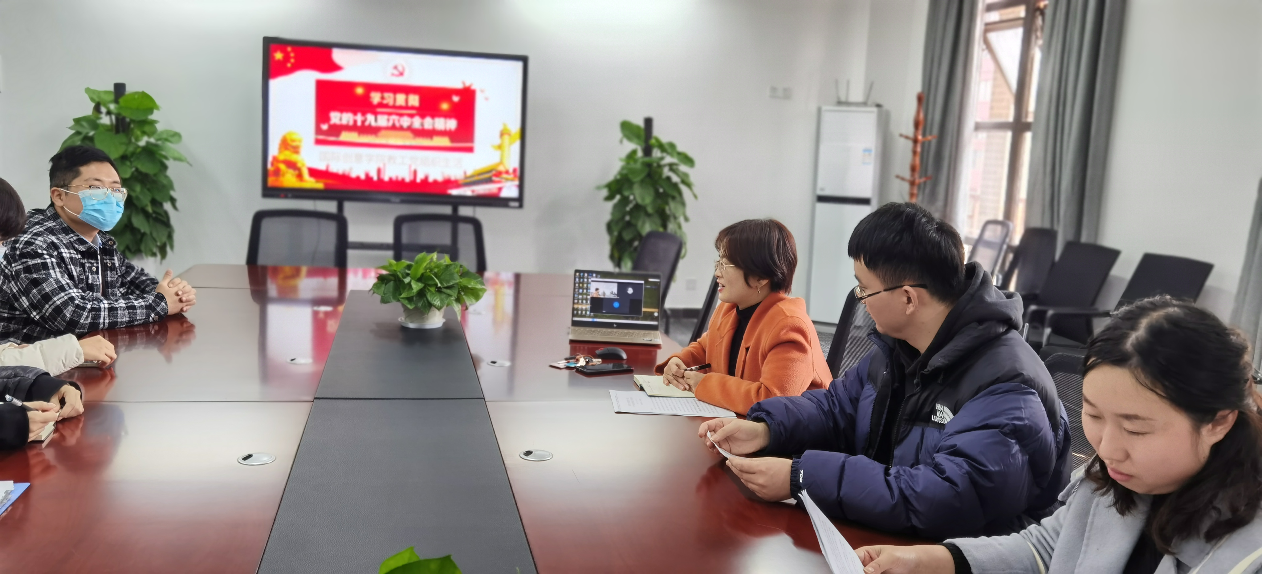 11月26日中午, beat365平台官方网站国际创意学院党支部召开党组织生活会,学习党的十九届六中全会精神,传达院党组织关于贯彻落实全会精神的工作部署,研讨贯彻落实具体举措。国际创意学院全体党员参会。党支部书记仪雪主持会议。