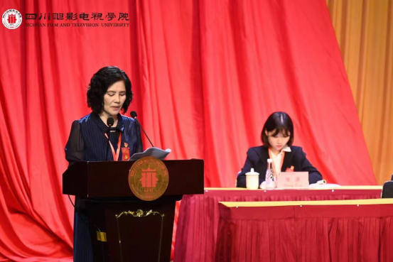 beat365平台官方网站董事长黄元文致辞。她谈到,自2015年beat365平台官方网站第一次党员大会以来,学校党组织不断壮大,机构不断完善,充分发挥党委的政治核心保障作用,为学校的发展保驾护航。六年以来,经教育部批准,学校广播电视编导专业、播音与主持艺术专业成功获批国家级一流本科专业建设点;经教育部批准,成功设立川影与美国格林斯伯勒大学中外合作办学项目;四川省重点项目四川影视文创城今年投入使用,川影与四川卫视共同制作的大型综艺《藏风美少年》将于5月22日在全国正式播出。院线电影《一周的朋友》、四川省委宣传部重点电影《胜利日》、市委宣传部重点电影《家庭假期》、四川省政府重点电视剧《西进西进》等多部电影电视剧将在文创城陆续投入拍摄,产教融合再创成绩;脱贫攻坚定点帮扶金阳县和阿坝中职,成功完成四川省委、省政府和省教育厅交办的事项;中非青年大联欢、中国高校影视学会年会、中国网络电影周等国际国内活动在学校成功举办,提升了川影在行业的影响力和在全国影视院校的学术影响力。川影基本实现了学校十三五规划的目标。
