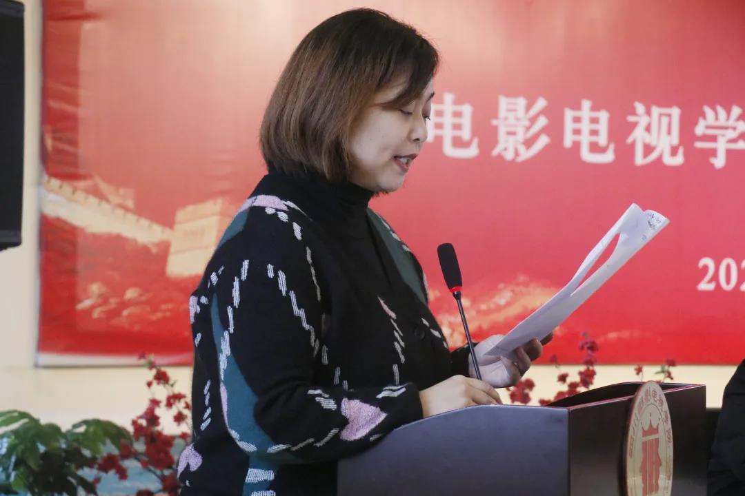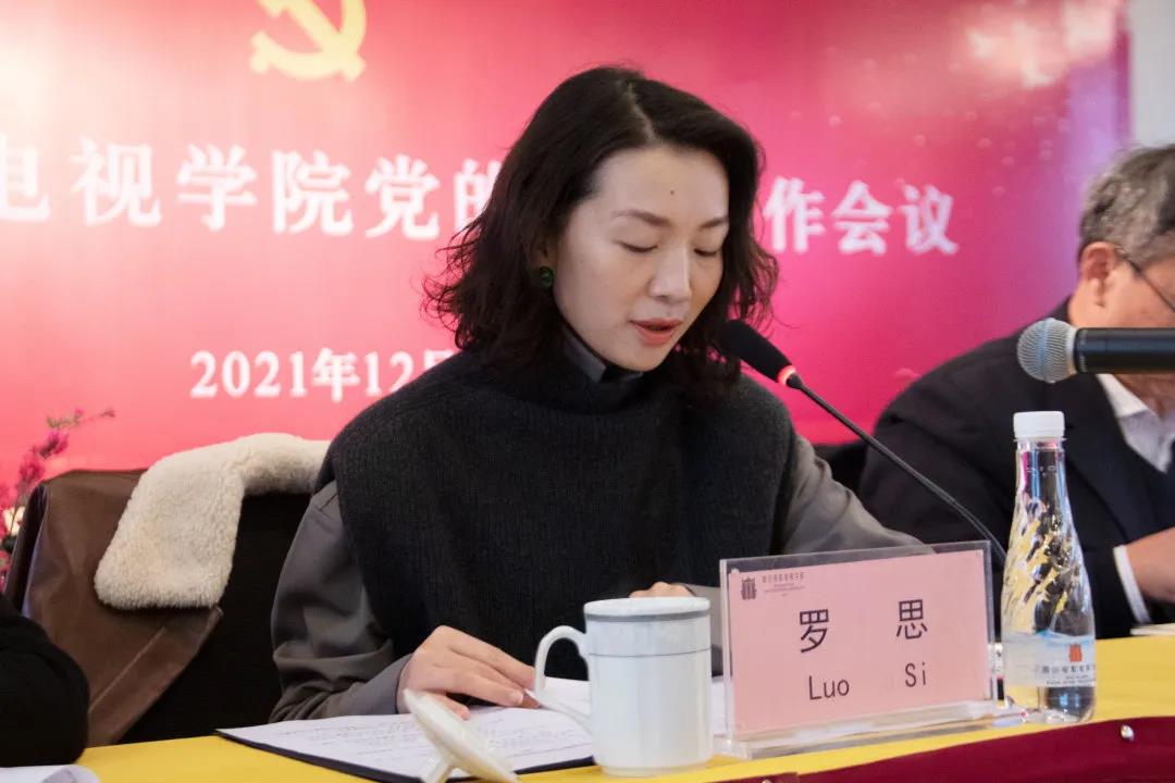 电视学院党总支介绍“123+1”特色党建工作体系,即围绕一个指导思想、发挥两个核心力量、构建三全育人思路加抓好一个宣传阵地,将党总支的工作成果用数字进行了凝练总结。