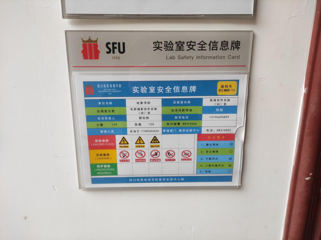 2、保证实验室观察窗的可视性,门口需张贴安全信息牌,并及时更新相关信息。