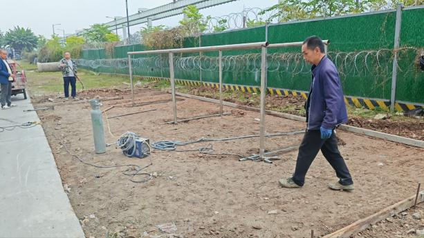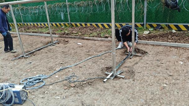 维修组搭建晾晒场基础设施
