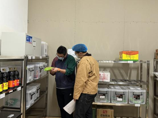 (食堂卫生安全的库房、记录检查现场图)