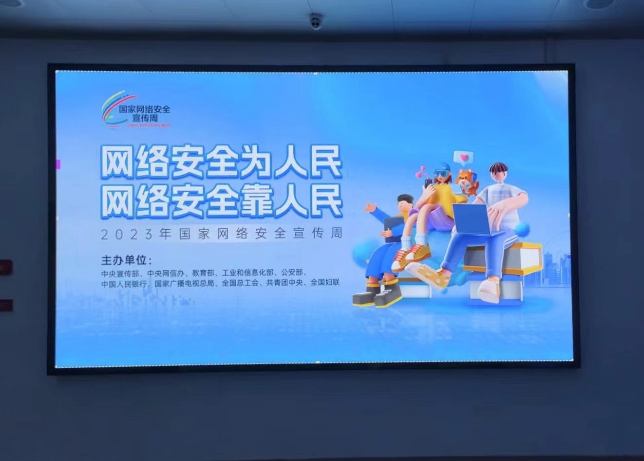 通过两校区电子大屏滚动播放国家网络安全周活动主题及相关宣传资料,在两校区悬挂横幅、宣传栏张贴相关海报,动员广大师生协力营造清朗网络环境。