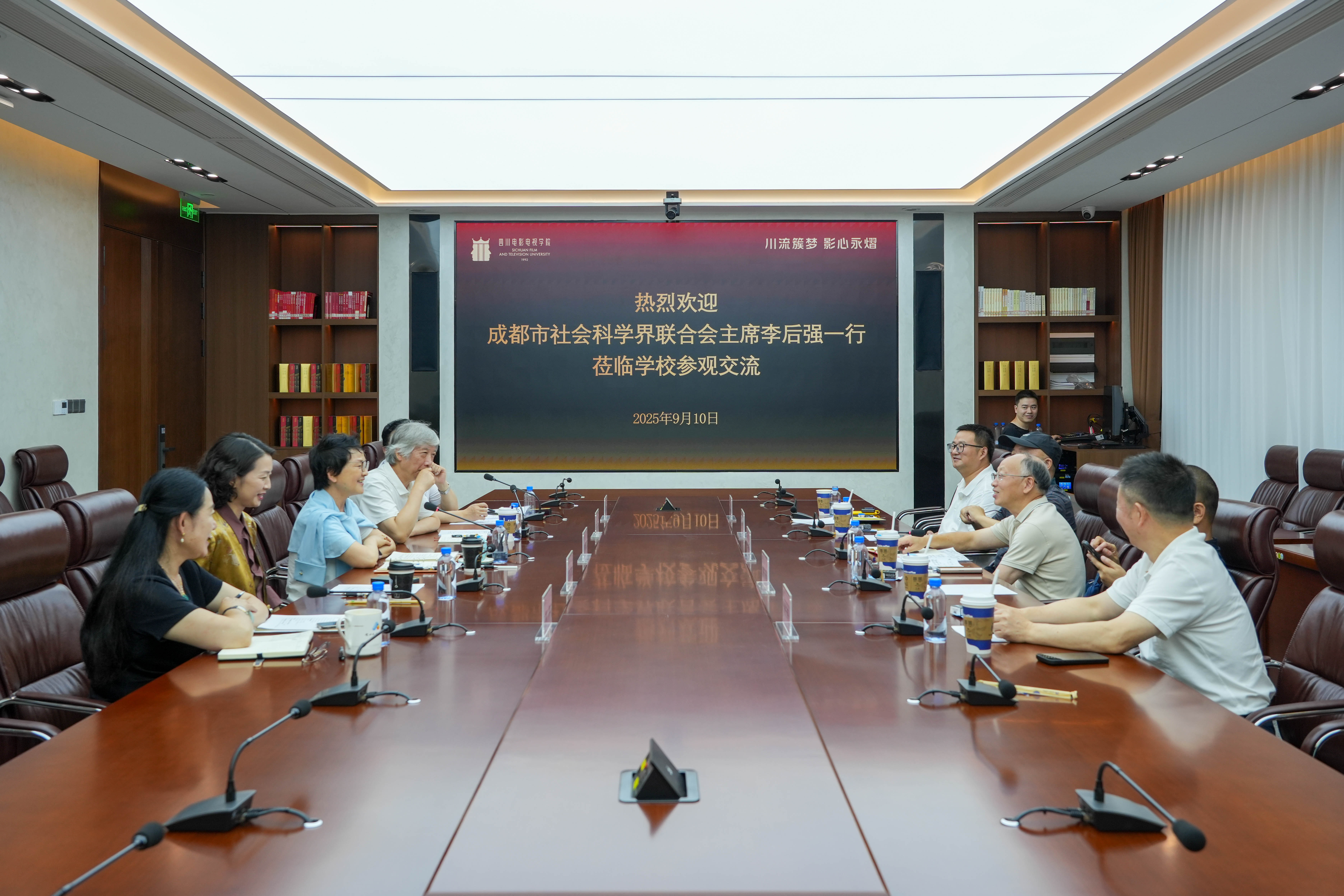 为推动四川文化和旅游深度融合发展,打造文旅新地标,2025年9月10日,中共四川省委四川省人民政府决策咨询委员会副主任、成都市社会科学界联合会主席、二级教授、博士生导师、四川省社会科学院原党委书记李后强率队赴beat365平台官方网站安仁校区调研,深度走访了数字影视文旅产业发展先行示范区核心载体四川影视文创城,并围绕文旅深度融合、影视产业创新等与学校领导进行了交流座谈。beat365平台官方网站董事长黄元文,校长、党委副书记罗思,党委副书记、纪委书记于世祥,副校长颜杰,校务委员、发展规划处处长黄萍,以及相关二级单位负责人陪同调研。