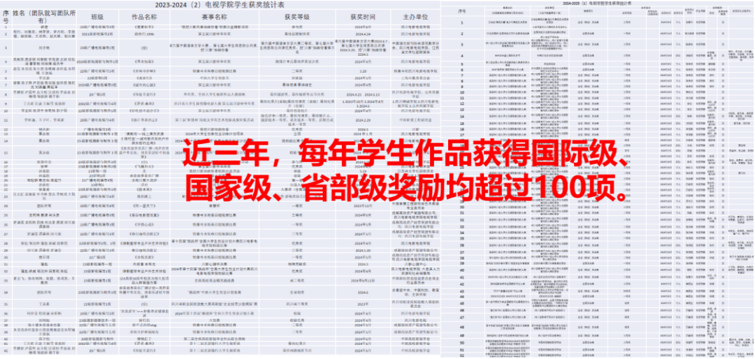 2024年,学校为专业学生搭建的“大学生非遗影像创新大赛”获四川省教育厅批准为省级大学生学科竞赛平台,并成立了“人文影像研究院”,在非遗影像领域彰显鲜明培养特色。
