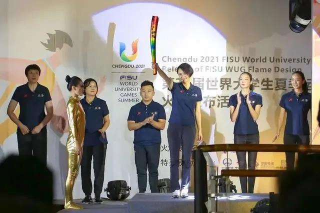 跳水运动员、奥运冠军高敏通过现场直播,向全球展示成都大运会火炬。