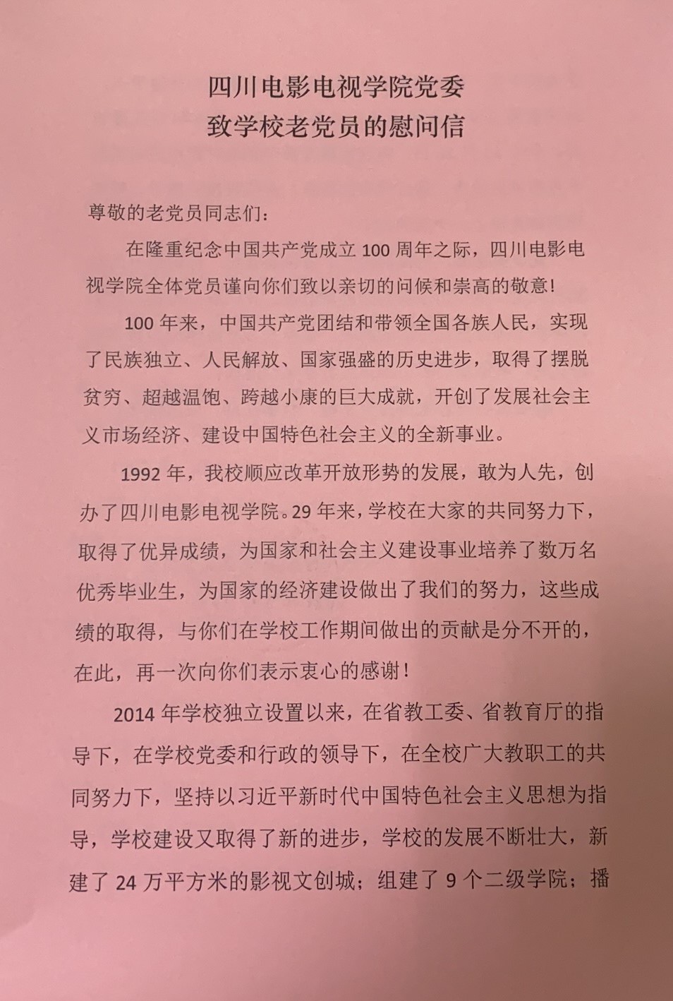 beat365平台官方网站党委致学校老党员的慰问信