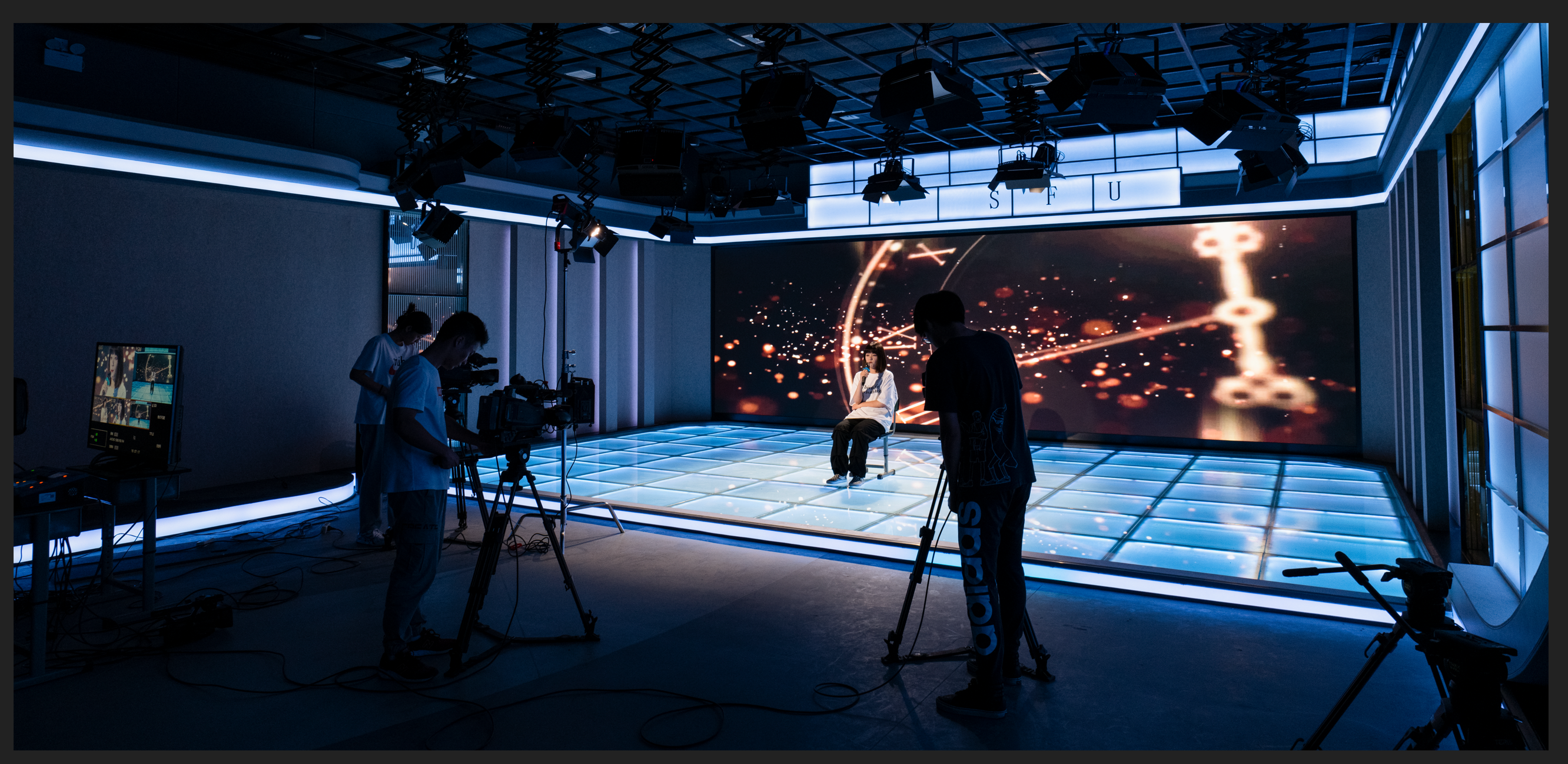 l 一体化节目制作实验(训)室总面积约141平方米。现有配套设备,可搭建5套导播系统。其中包括导播切换台、视频处理器、摄像机、调音台、话筒、调光台、图形工作站、提字器、基础照明等器材。