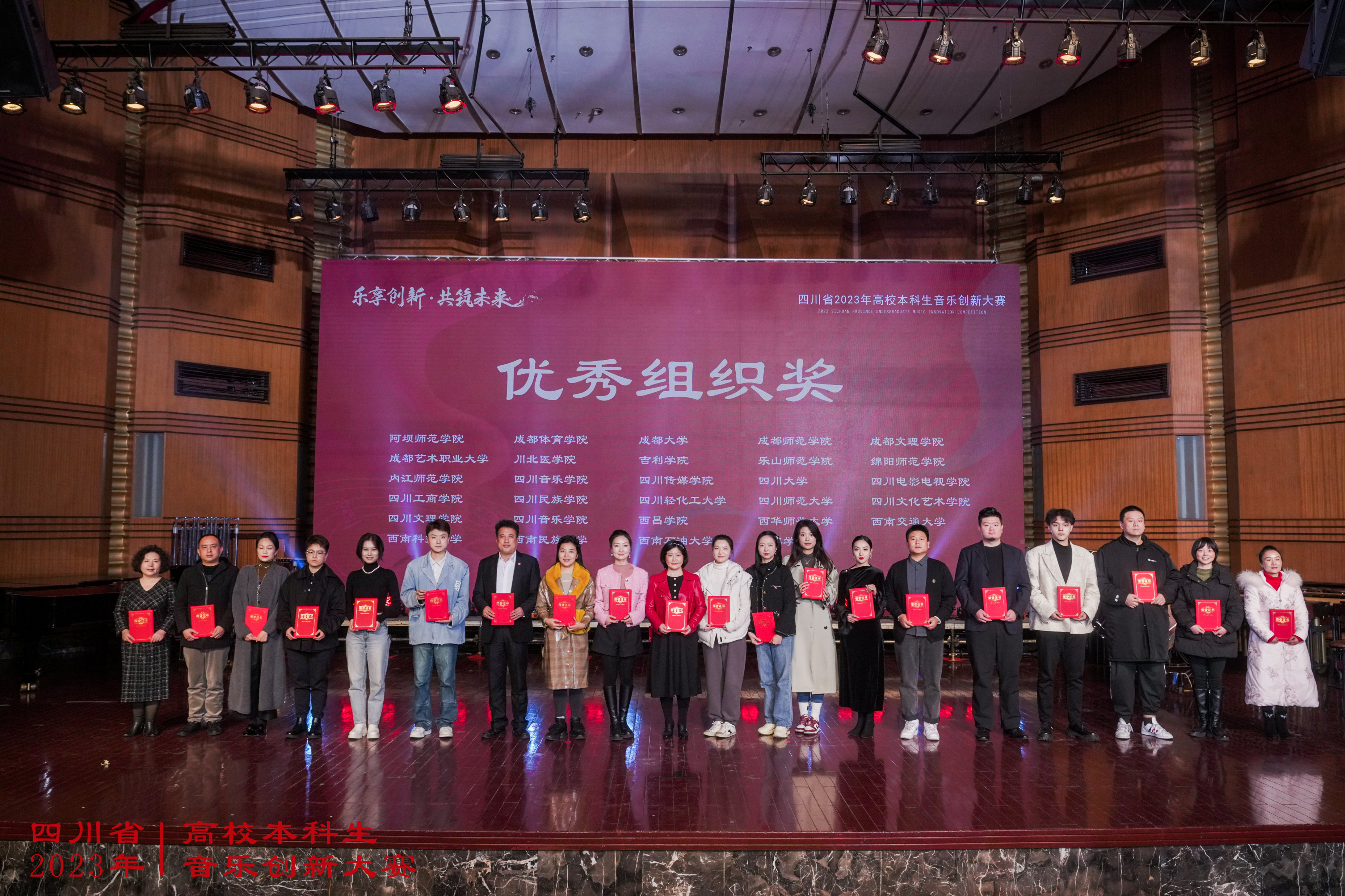 12.学生参加四川省2023年高校本科生音乐创新大赛, 获金、银、铜奖及创新奖共计18项(金奖2项、银奖9项、铜奖4项、创新奖2项),并荣获优秀组织奖的称号。