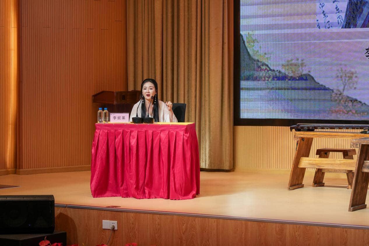 李教授身着典雅的传统服饰,气质温婉,一开口便将大家带入了一个充满诗意的古琴世界。她从古琴的历史渊源和文化背景讲起,娓娓道来。古琴,作为中华传统文化的瑰宝,已有三千多年的悠久历史。它不仅仅是一件乐器,更是音乐艺术的象征,承载着文人雅士修身养性、寄情山水的精神追求。