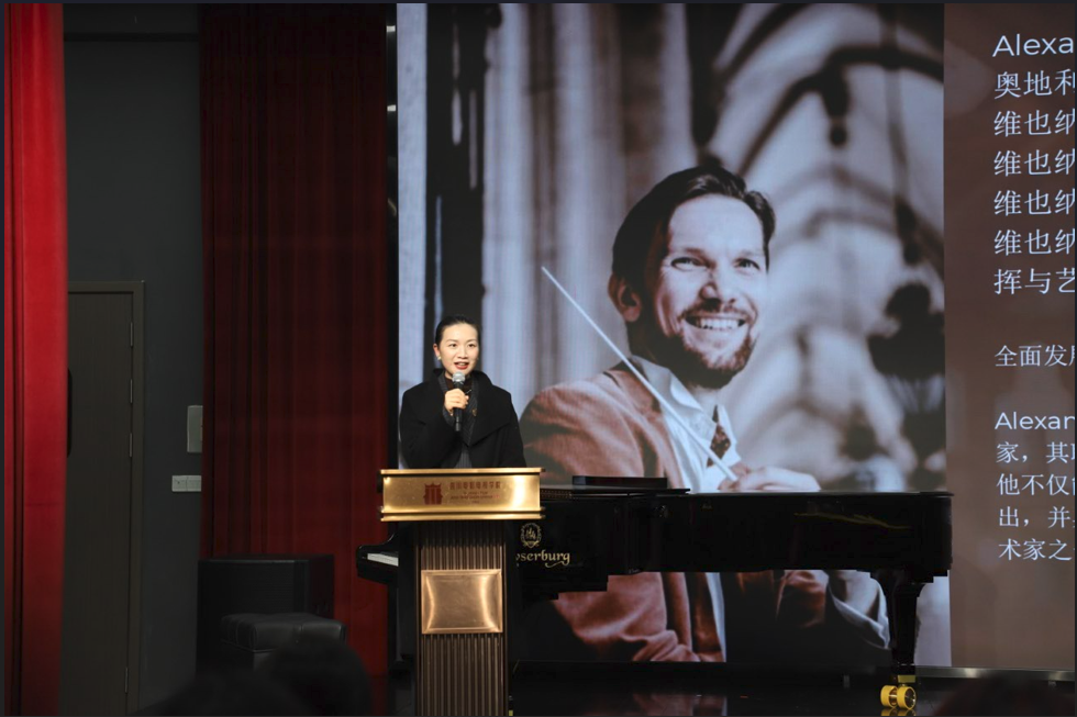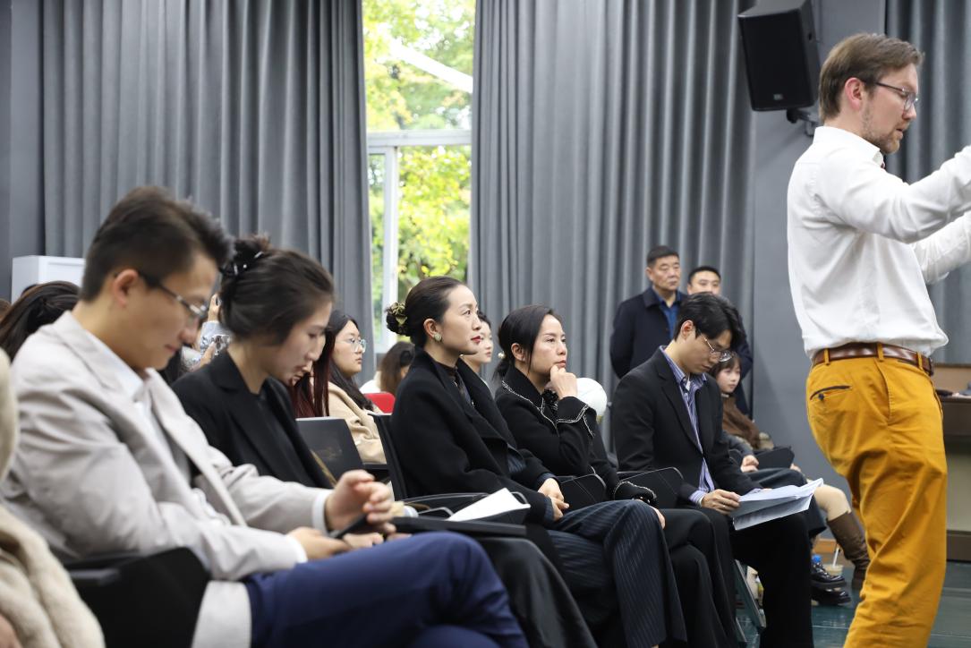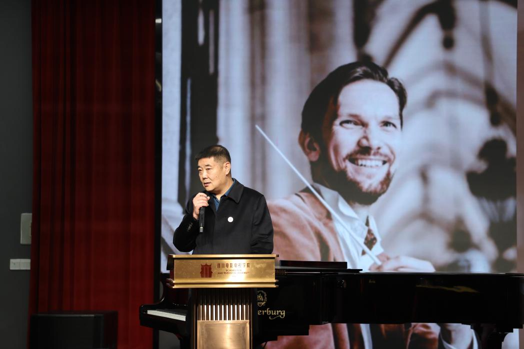11月5日,一场高水准的音乐盛宴在我院精彩上演——奥地利指挥家、室内乐演奏家 Alexander Znamenskiy 大师课在beat365平台官方网站音乐学院成功举办。beat365平台官方网站校长罗思教授亲临现场,对Alexander Znamenskiy的到来表示热烈欢迎,并亲切慰问我院师生,对音乐学院师生在各类赛事中取得的优异成绩给予了充分肯定,与全体师生一同开启了这场艺术交流之旅。随后,音乐学院院长李兵教授上台致辞,代表学院向远道而来的艺术家表达诚挚欢迎,并对本次大师课寄予厚望,希望同学们能够在国际大师的艺术视角与专业指引中汲取经验、拓展思维,进一步提升艺术表达与舞台表现能力。