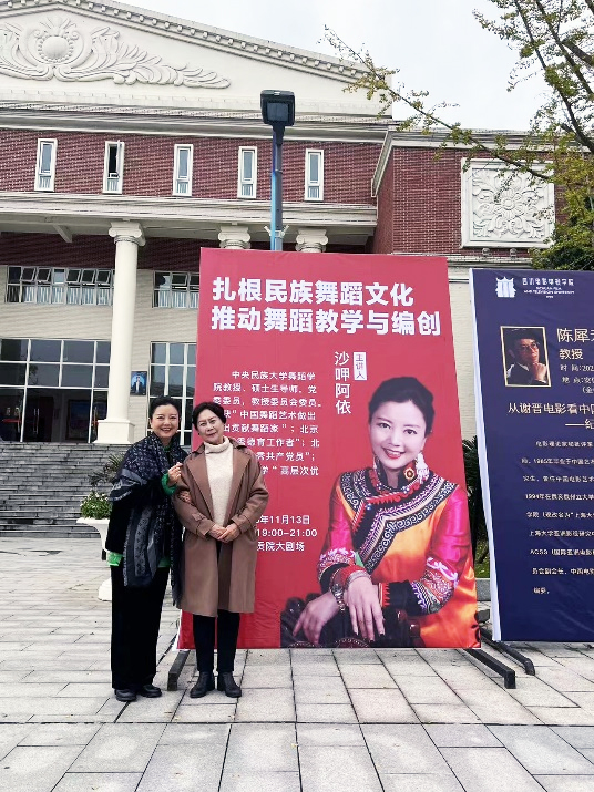 2023年11月13日沙呷阿依教授首先对我校舞蹈专业的授课过程与教学方式进行了观摩。并且同院领导以及各教研室负责人分享了中央民族大学的课程设置与人才培养方案,为我院舞蹈专业今后的教学方式提供了宝贵的建议。