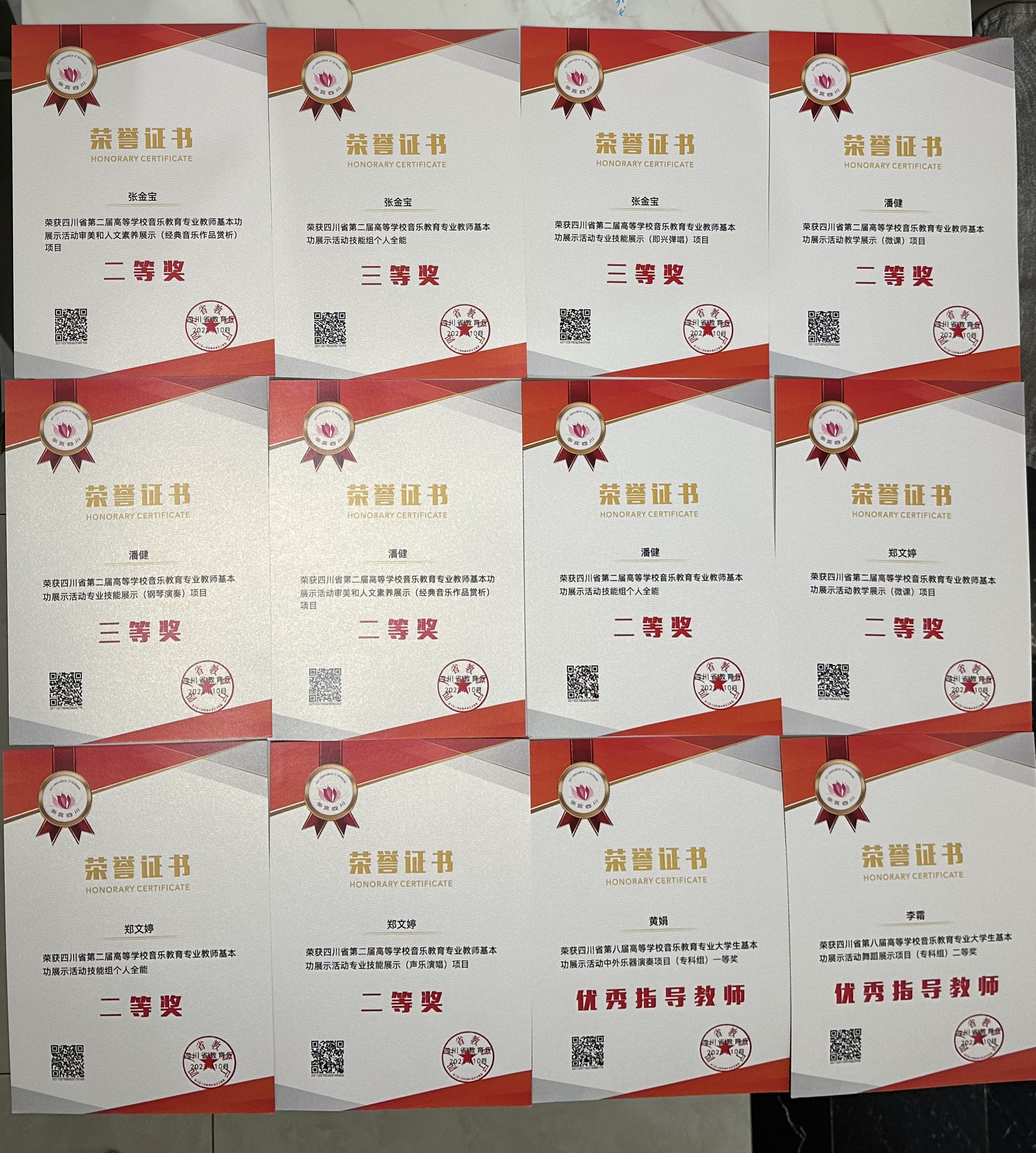 我院音乐系在“四川省第二届高等学校音乐教育专业教师基本功展示和四川省第八届高等学校音乐教育专业大学生基本功展示活动”中斩获多项大奖。