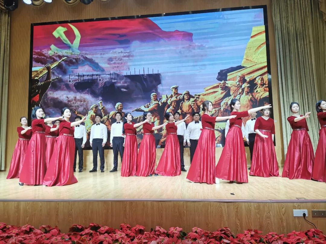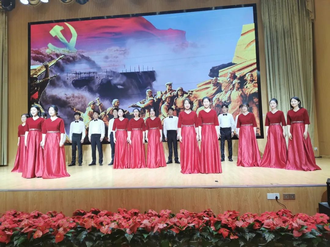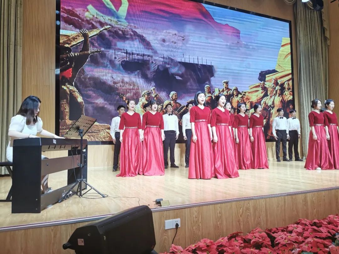在教学中,黄老师深入挖掘教学内容的思政元素,并作为重点进行讲解。整首作品的排练包含4个章节内容:《黄水谣》的旋律演唱(了解剧目创作背景、发声训练、旋律学习)、《黄水谣》的演唱与情感分析、《黄水谣》的情感表达与舞台表演实践、《黄水谣》的舞台展演与实践。在黄老师的讲解、引导下,激发了学生们的爱国主义情怀,在对其进行革命精神教育的同时也对学生进行了集体意识、团结协作能力等方面的培养。