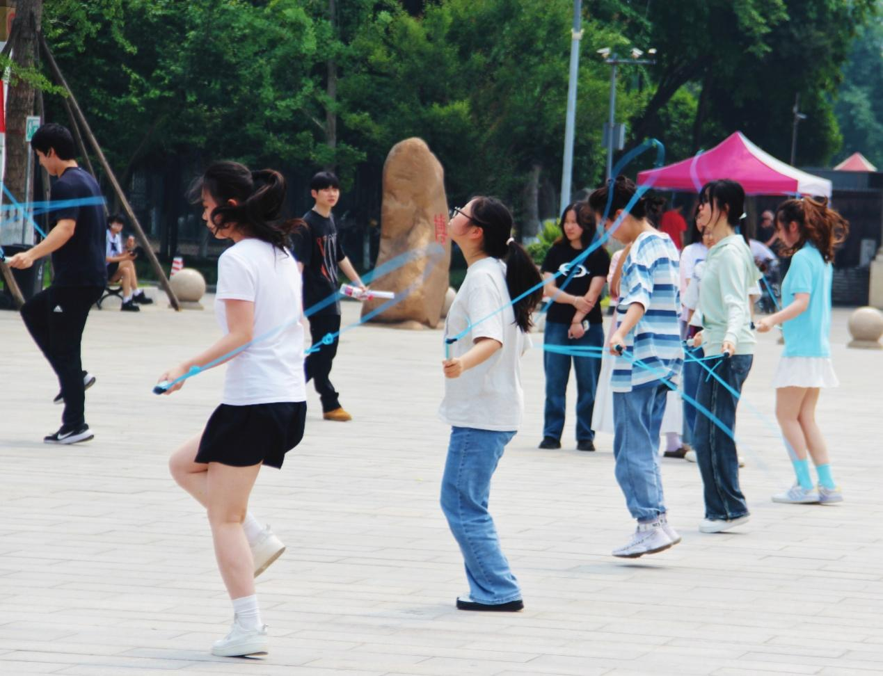 在跳绳比赛现场,绳似虹飞转,人似蝶翩跹。每一分每一秒都至关重要,力量与速度在这里缺一不可,共同演绎着跳绳运动的魅力与激情。
