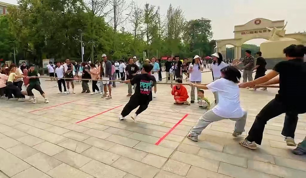 在拔河赛场上,运动员们紧握绳索,凝聚成一股不可阻挡的力量。随着助威声此起彼伏,同学们纷纷拼尽全力,以坚韧不拔的精神挑战自我,为团队的胜利而拼搏。