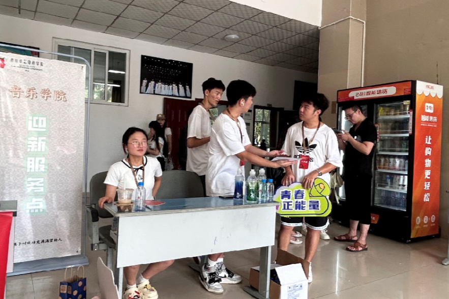 迎接新同学入校的浓郁氛围