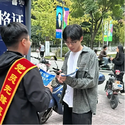 11月4日,月亮座社区开展了一次广泛的安全宣传活动。本次活动由各楼层层长及党员先锋队伍来组织带领,在寝室大厅,楼道甚至进入到宿舍,为每一位同学宣传反诈骗。