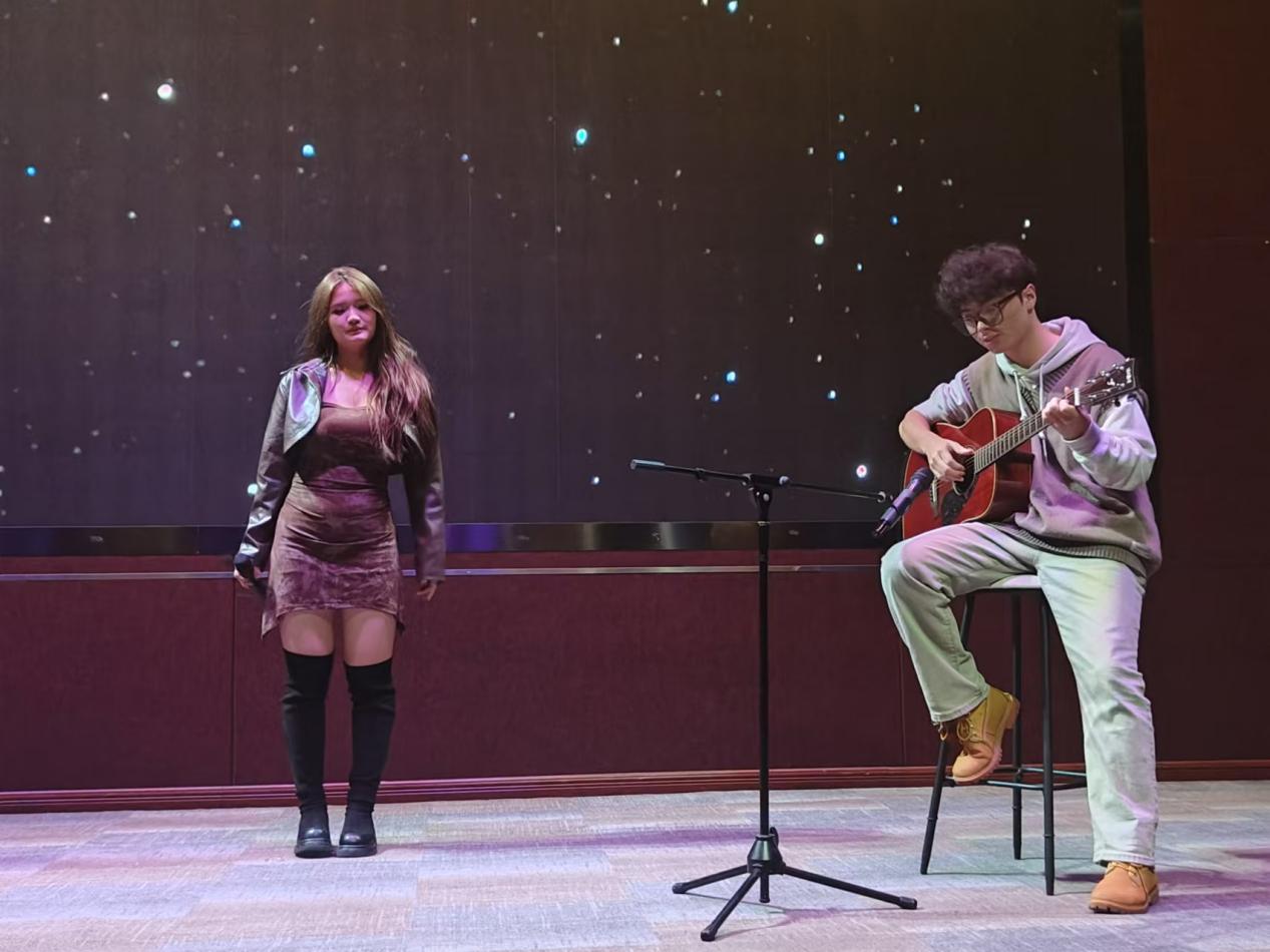 精彩的才艺表演环节更是让人大饱眼福。冯梓铭、黄忆琳、巫嘉丽、李佳欣的同学带来了一段动感十足的现代舞,他们活力四射的舞姿、整齐划一的动作,犹如青春的火焰般炽热,充分展现了年轻人的激情与力量。一首悠扬的合唱《小半》,唱出了同学们对未来的憧憬和对彼此友谊的珍视。此外,优美典雅的乐器演奏由六班同学为我们呈现,悠扬的歌声如清泉般潺潺流淌。歌者宛如夜莺般悦耳,用其婉转的歌喉倾诉着一个个动人的情感故事。那歌声或高亢激昂,似冲破云霄的飞鸟,震撼着每一个人的心灵深处;或低回婉转,像月下的溪流,悄然滋润着心田。音符在空中轻盈跳跃、相互嬉戏,犹如一群活泼的精灵,在空气中编织着爱与希望的旋律,让听众们深深陶醉其中。一个接一个的精彩节目让观众们目不暇接,掌声和欢呼声此起彼伏。