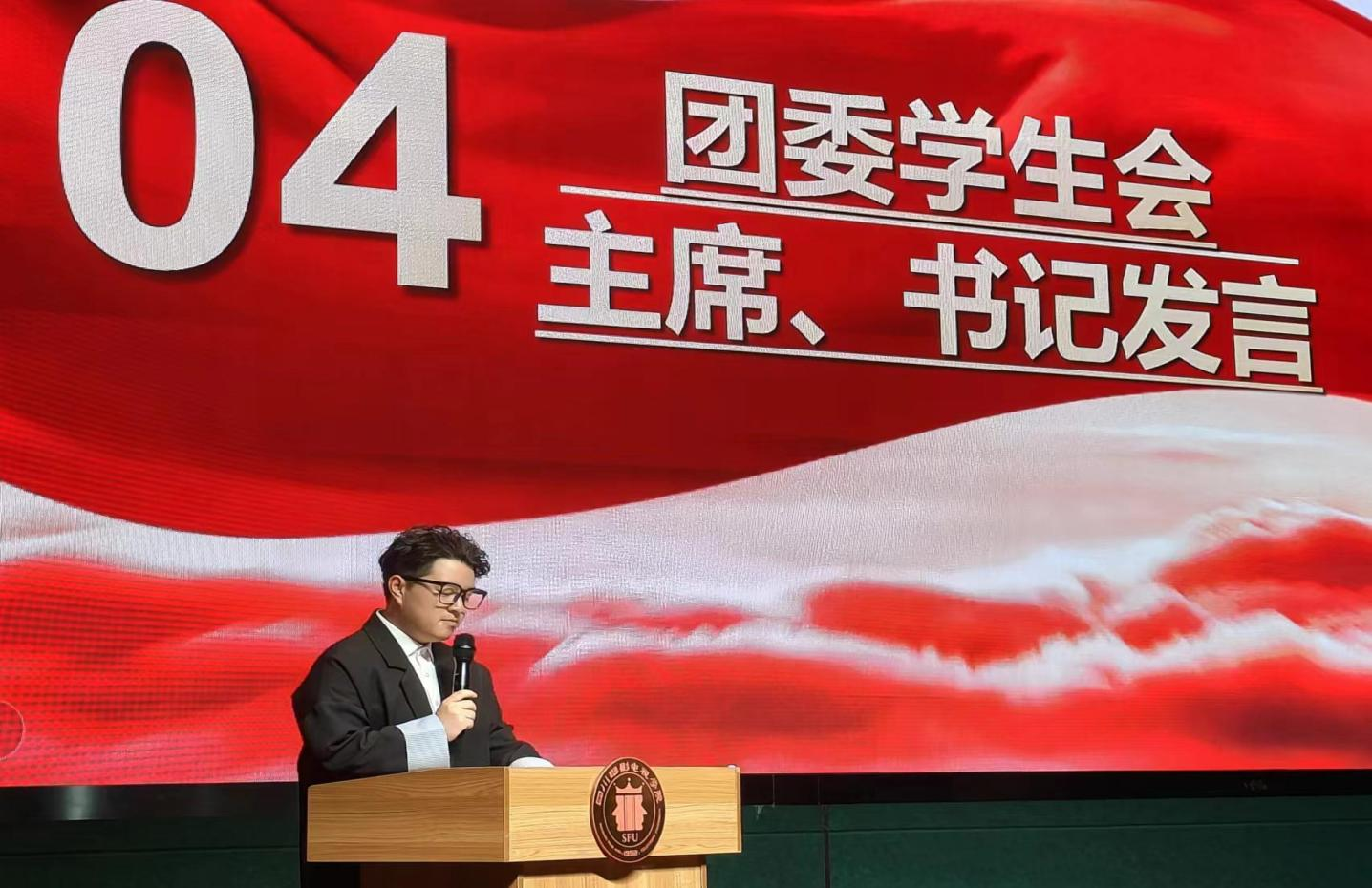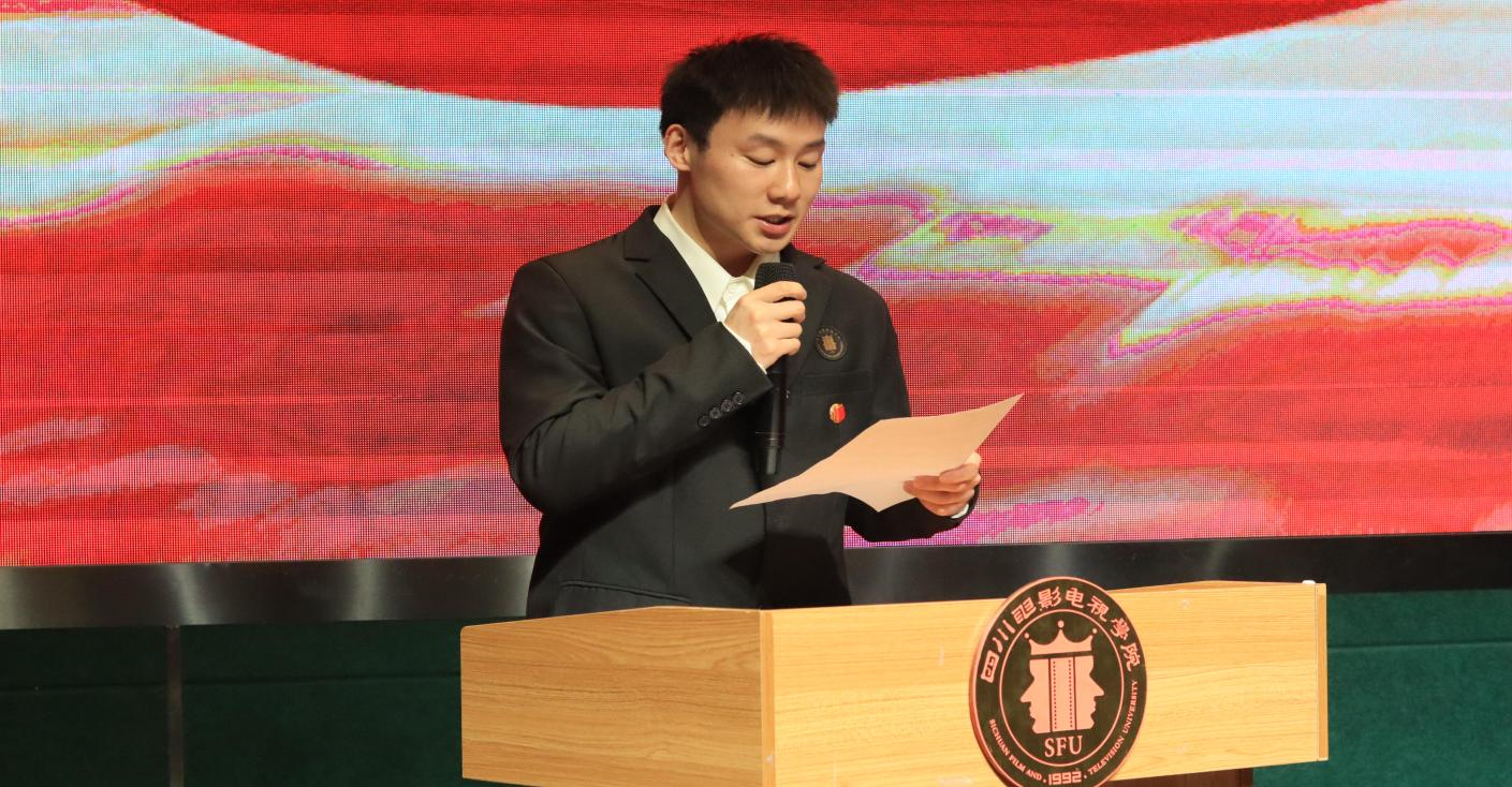 (音乐学院团委学生会团委学生副书记卿耘豪发言)