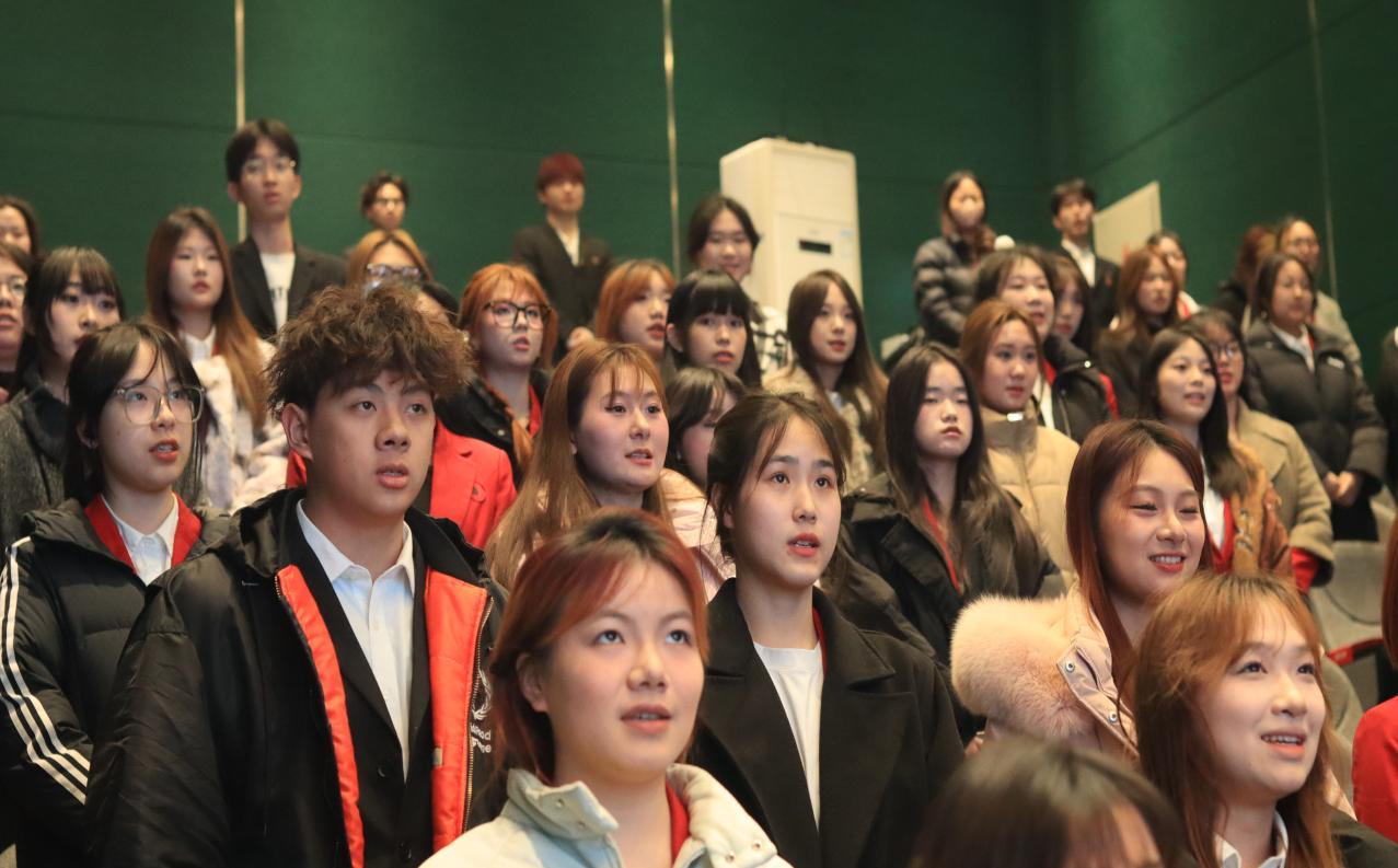 会议现场气氛庄重而热烈,随着音乐声响起,新一届团委学生会全体成员起立,齐声高唱共青团团歌。歌声激昂、旋律优美,充分展现了音乐青年学子的蓬勃朝气和坚定信念。