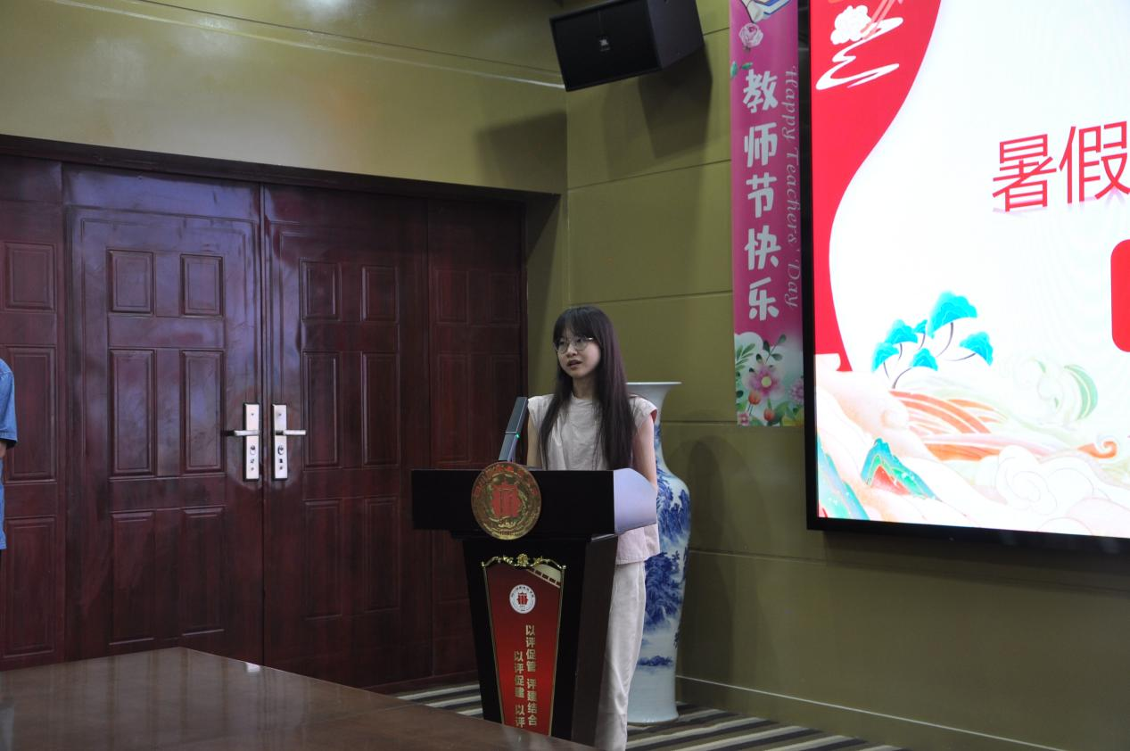比赛结束后,评委代表许雪老师对本次的比赛进行总结。评委老师们对同学们的暑期生活丰富多彩表示赞赏,高度评价了大家的语言表达流畅、姿态自然及认真态度。针对PPT制作,建议减少文字,突出重点,以直观图片来展示实践内容。同时,指出部分同学存在紧张情绪,鼓励同学们多看多练,提高自信。最后,希望同学们保持对社会实践、志愿服务和职业体验的热情,积极参与各类活动,展现风采。