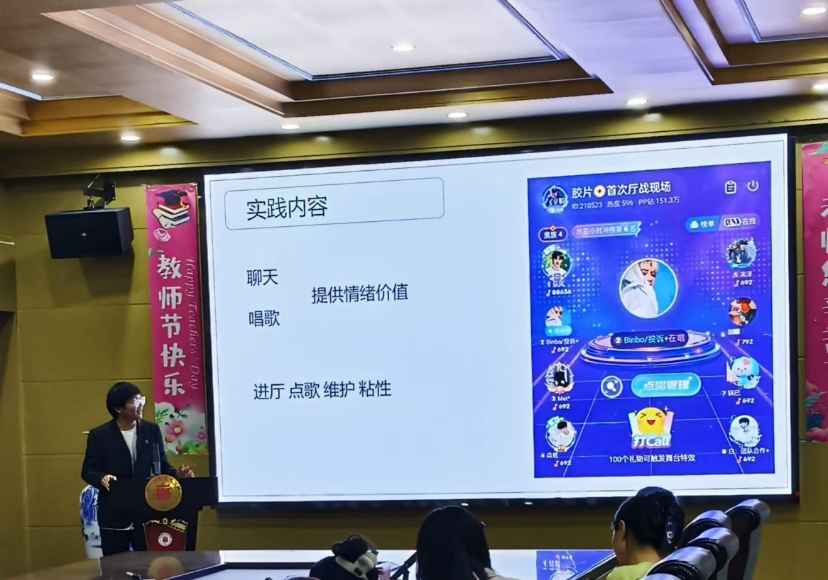 参赛选手罗焱风来自22级音乐表演(本)4班,他暑假利用互联网进行语音直播实践,在直播聊天和唱歌中锻炼自己的能力,同时吸取经验,提升自己的能力,也为网友们提供情绪价值。不仅提升自己的专业能力,更是强化了应对突发情况的处事能力。在新时代的青年应该有创新精神,不断探索新的思路和方法,推动科技进步和社会发展。选手通过这次社会实践,不仅在专业领域有所收获,还在人际交往和自我管理方面得到了显著提升。这次经历无疑为他未来的职业道路打下了坚实的基础。