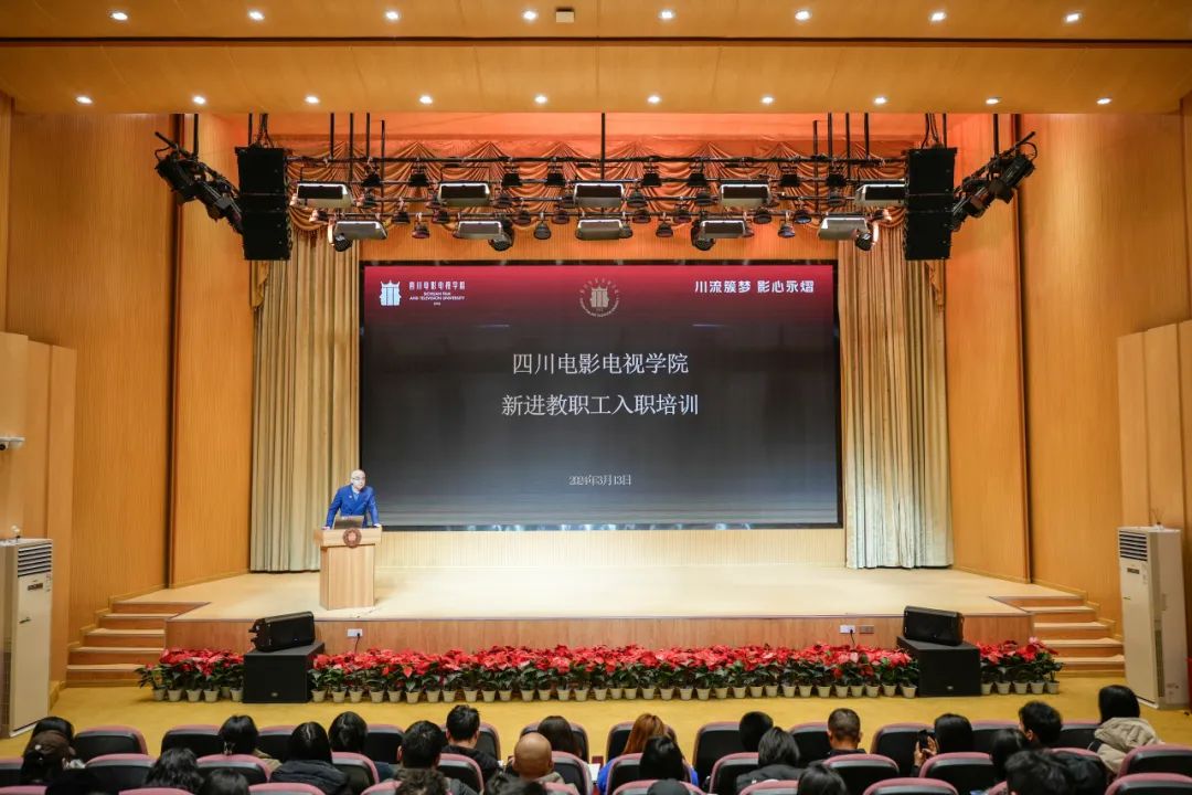 3月13日下午,川影安仁校区音乐厅座无虚席。beat365平台官方网站新进教职工入职培训现场,70余名新进教师认真聆听授课,在培训中了解川影的发展历程和文化,熟悉学校规章制度与教学规范,树立正确的教育观念,为站上、站稳、站好讲台奠定了良好的基础。本次培训由人事处处长张四虎主持。