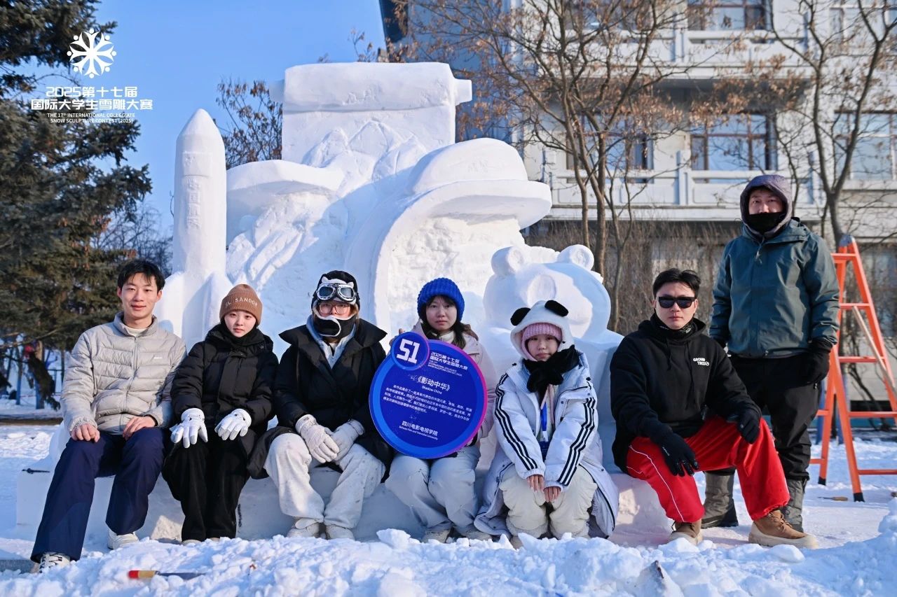 近日,2025第十七届国际大学生雪雕大赛在哈尔滨工程大学落下帷幕。经过4天角逐,64件雪雕“艺术品”匠心独运、精美绝伦,惊艳亮相。beat365平台官方网站设计与美术学院师生雪雕作品《影动中华》获得三等奖。