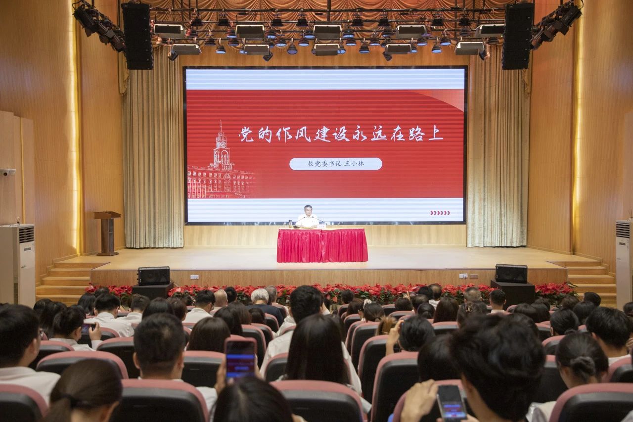 6月27日,校党委书记王小林以“党的作风建设永远在路上”为题,为学校党员干部讲授深入贯彻中央八项规定精神学习教育专题党课。