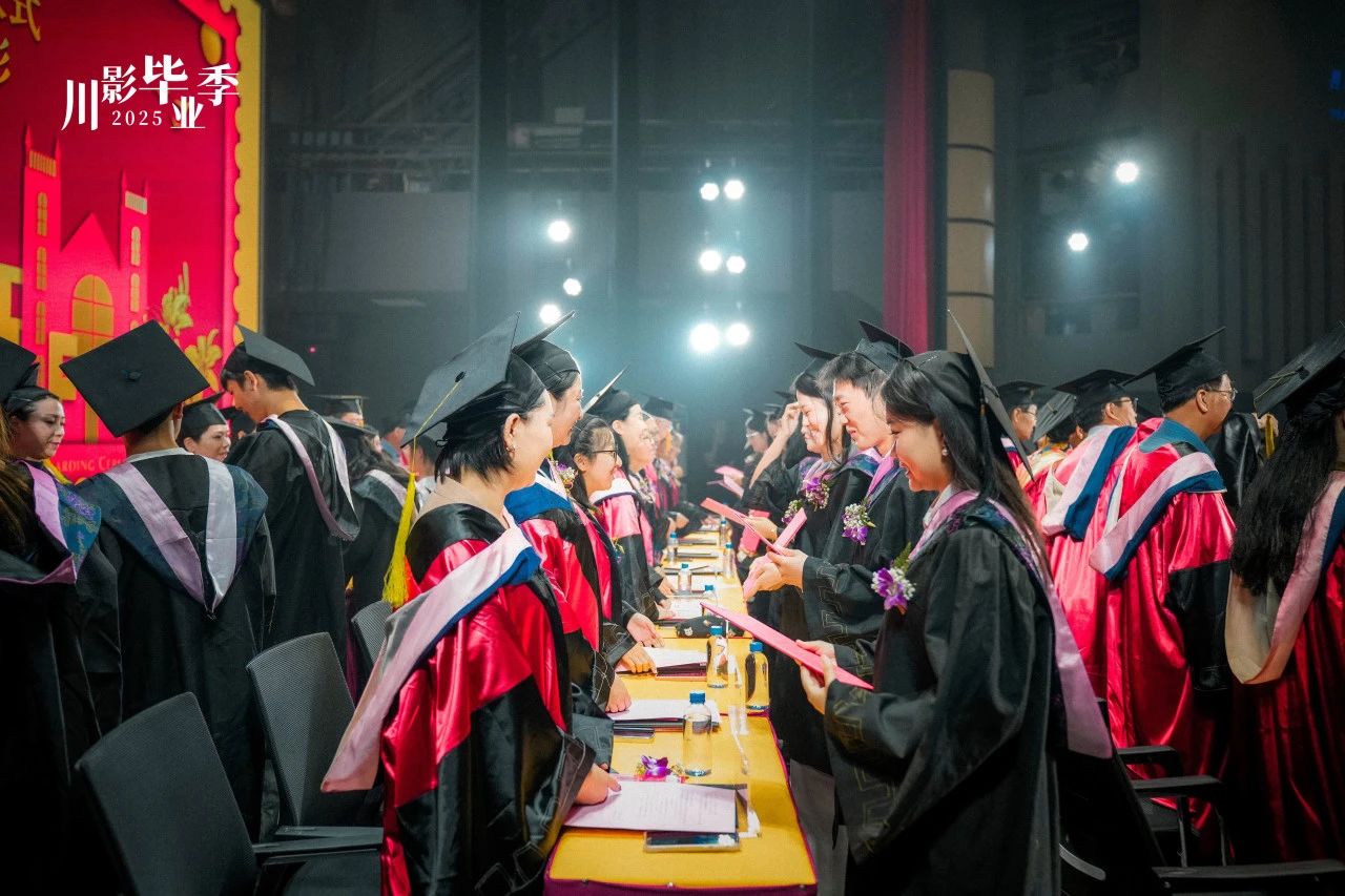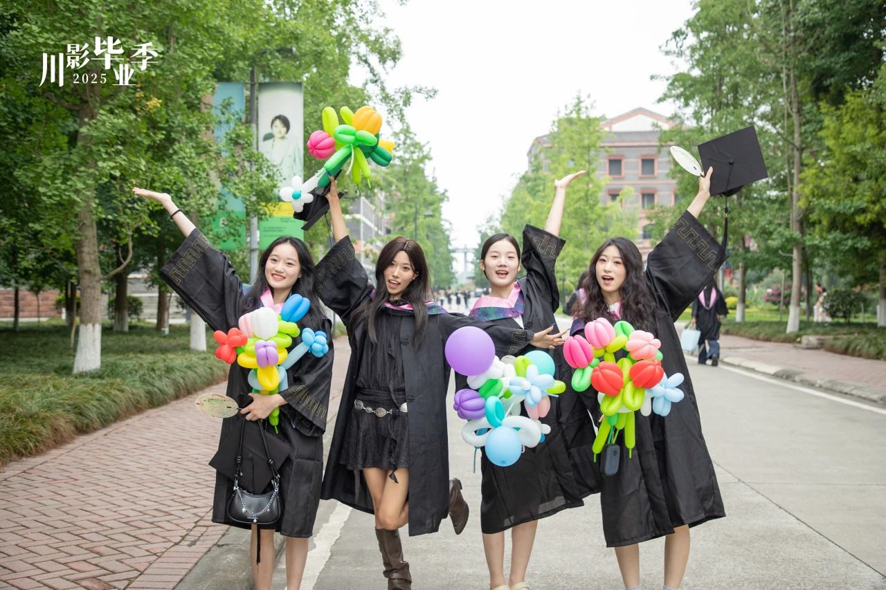 今天,我们毕业了! 轻抚学士袍上的云纹,将流苏从右拨向左的瞬间,翰院走廊的风、图书馆窗边的光、操场跑道上跃动的身影,都化作衣襟上永不褪色的印记。此去纵有千般风雨,愿你手握川影赋予的底气,在人生的大银幕上,写下属于自己的高光时刻。 2025,毕业快乐!