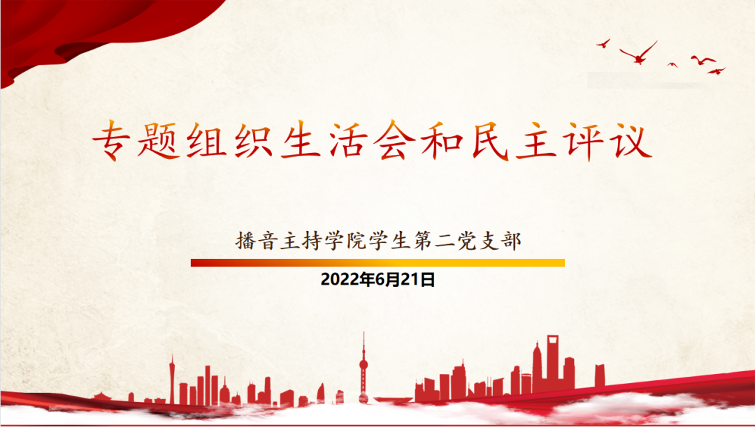 为进一步深化党史学习教育,提升同学们的使命感、责任感和荣誉感,增强全体党员同志的爱党、爱国情怀。6月21日,播音主持学院学生第二党支部组织全体学生党员、入党积极分子共同开展“学四史、守初心、肩使命、担责任”的主题党日活动。活动开始由支部秘书庞楠带领大家观看由四川省委组织部党员教育中心推出的系列微视频...