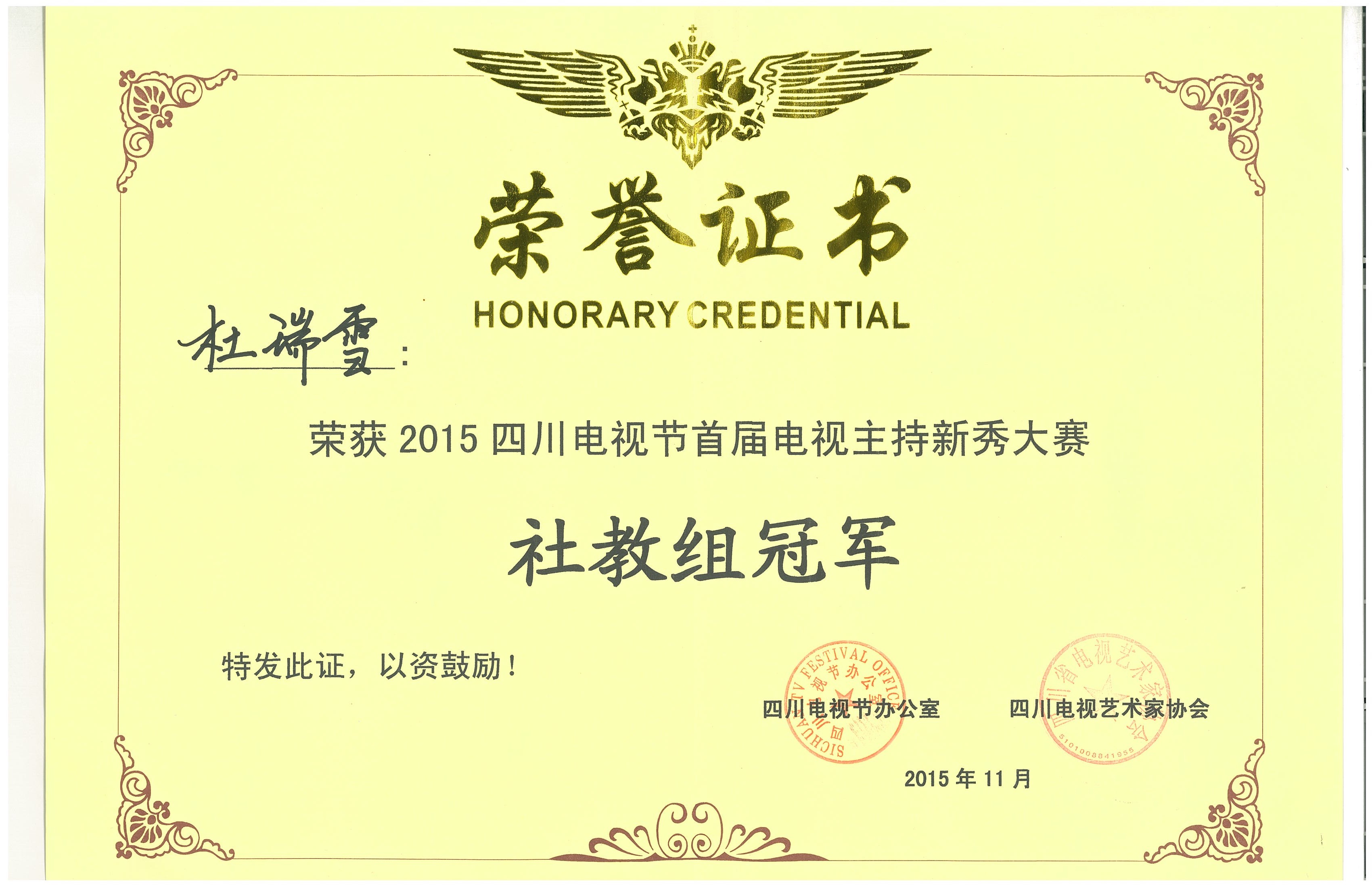 我院毕业生杜瑞雪同学荣获2015四川电视节首届电视主持新秀大赛社教组冠军