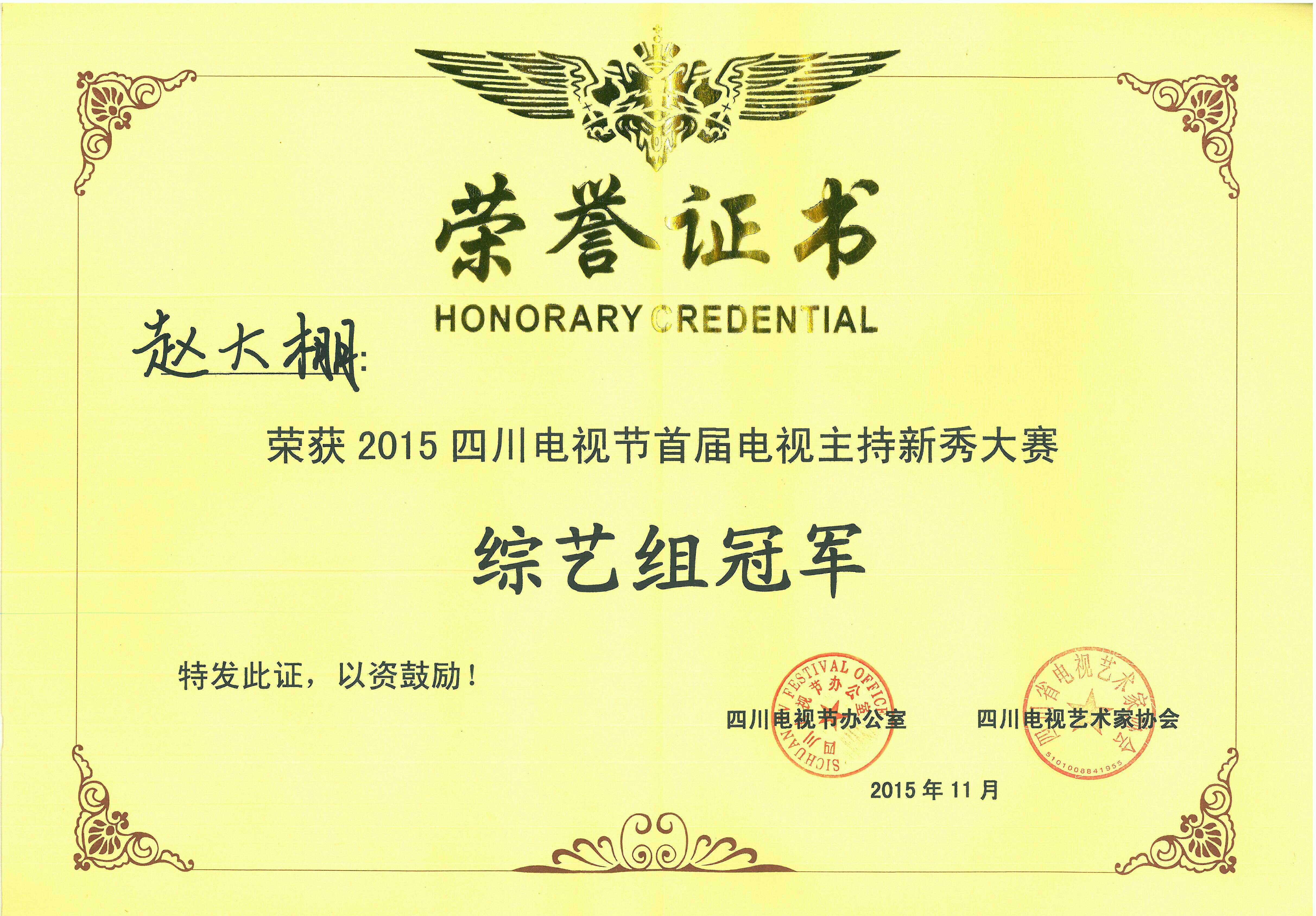 我院学生赵大鹏荣获2015四川电视节首届电视主持新秀大赛综艺组冠军