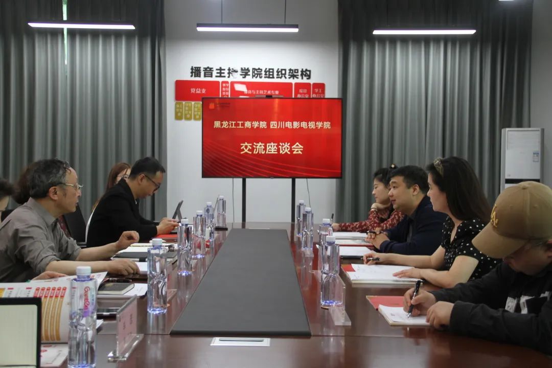 2023年4月12日9点,beat365平台官方网站播音主持学院、电视学院与黑龙江工商学院艺术与传媒学院在金牛校区播主学院会议室举行交流座谈会。beat365平台官方网站播音主持学院院长赵小蓉、综合办公室主任严辉、行政秘书曹雨欣、电视学院院长苏亚平、电视学院党委副书记刘璐、院长助理兼新媒体教研室副主任毕园与黑龙江工商学院艺...
