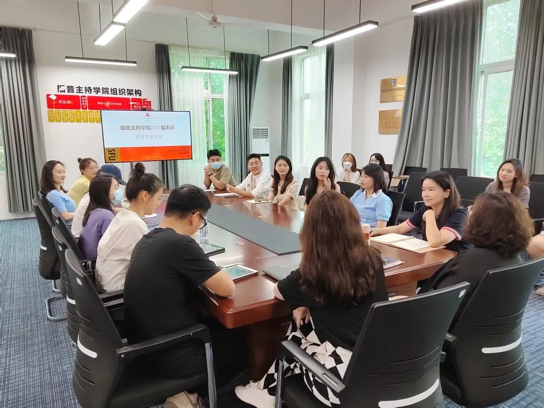 5月11日上午,播音主持学院2022届毕业生座谈会在贡院413播主学院会议室举行。播音主持学院院长赵小蓉,播音主持学院党委书记、副院长李丹,播音主持学院党委副书记、纪委书记曾丽萍,播音主持学院综合办公室主任严辉,播音主持学院团委书记谭麒麟,播音主持学院学工部负责人肖敏、部分辅导员代表及2022届毕业生代表参会...