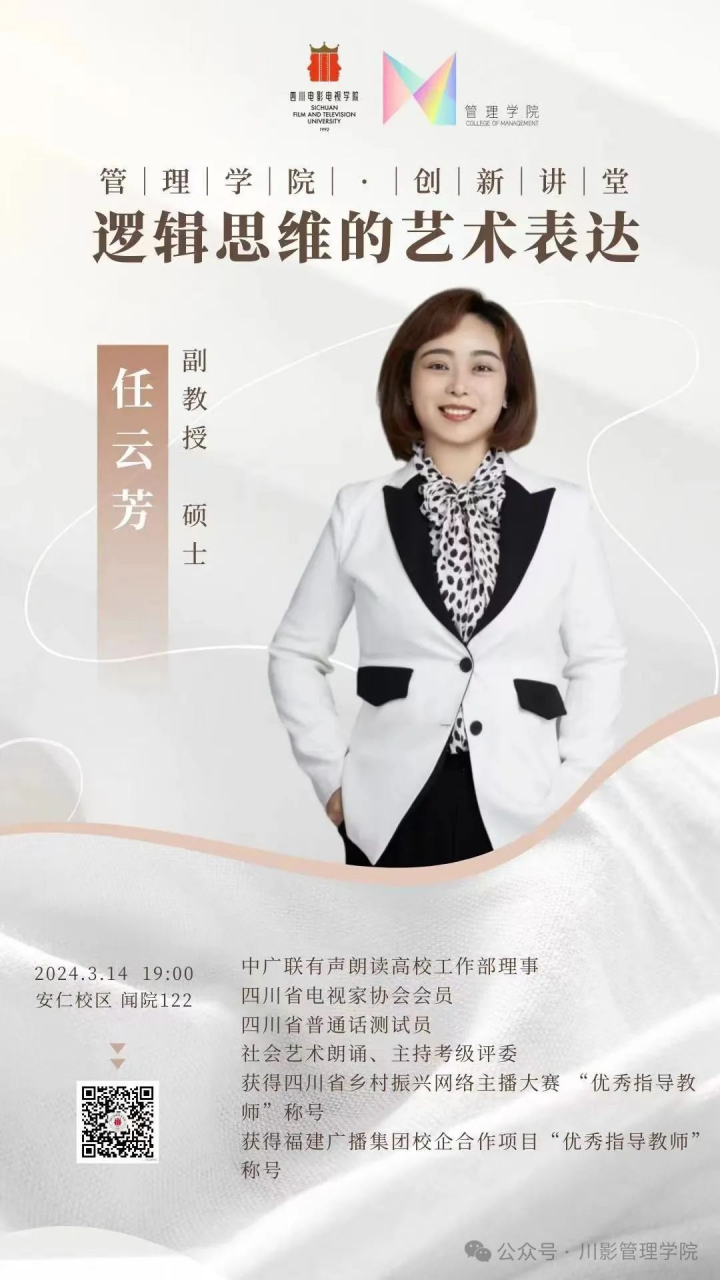 2024年4月9日19:00管理学院名人讲堂在蓝厅举行,本次讲座主题为“我的艺术之旅”,由当代青年艺术家陈晨宝蕴老师进行讲解。参与此次讲座的有管理学院黄娟院长、管理学院文化产业管理教研室副主任薛扉页老师、会展经济与管理教研室副主任张媛老师,还有2022级文化产业管理专业、2022级会展经济与管理专业和2023级文化产业...