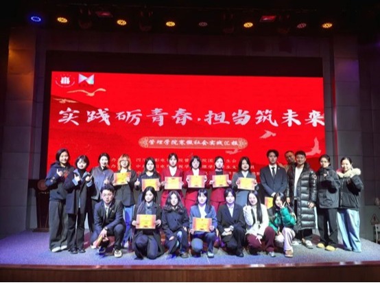 管理学院组织开展了寒假社会实践活动,并于2025年3月12日在大剧院金厅举办“实践砺青春,担当筑未来”的演讲比赛来对寒假的社会实践进行总结。管理学院党委副书记晏艺慈老师、学生第一党支部书记肖玉兰老师、学生第二党支部书记赵涛老师、团委书记何贵容老师、学工办负责人向其芳老师、艺管专业教研室王宗一老师及各位辅...