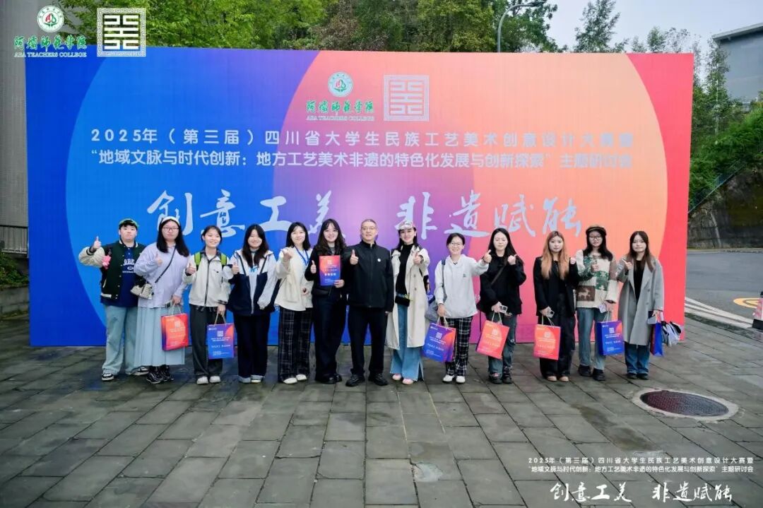 2025 年 10 月 19 日,由四川省教育厅主办、阿坝师范学院与阿坝州文化馆(阿坝州非遗中心)联合承办的“2025 四川省大学生民族工艺美术创意设计大赛”,在阿坝师范学院水墨桃 园 大 剧 场 圆 满 落 幕 。 设 计 与 美 术 学 院 执 行 院 长 李 靖 带 队 参 加 现 场 决 赛 。本次大赛以“创意工美 非遗赋能”为主题,吸...