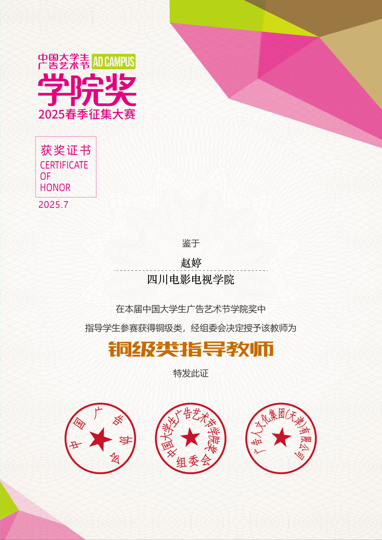 艺创赋能,薪火相传!我校师生在三大赛事中斩获佳绩中国高校影视学会 凭借对林业发展的深度诠释与精湛影视表达,作品《林野长青》成功入围高校影视学会!荣获“年度优秀短视频作品(学生组)”称号。这一荣誉的背后,是十位创作者深入山林,实地拍摄和细致打磨的匠心之作。入围院校及作品名单《林野长青》荣誉证书中国高校...